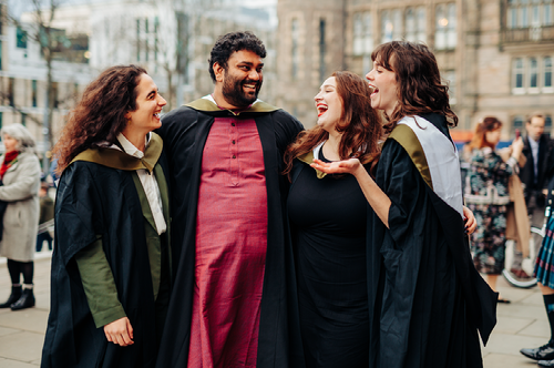 📷 Rudo (L) and Cleo (R) sharing a joyful moment outside McEwan Hall