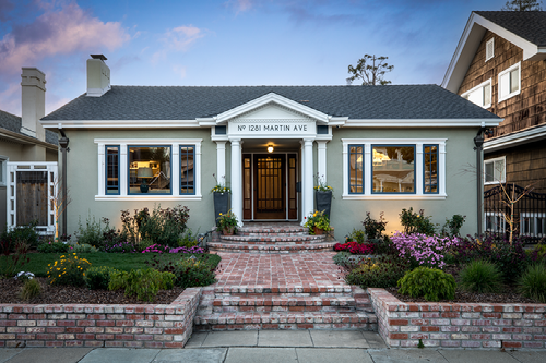This stunning Wolfe & Higgens designed single-story masterpiece is nestled in the Shasta Hanchett Park neighborhood of The Rose Garden on the picturesque, palm tree-lined Martin Avenue. Upon arrival, you will be captivated by the newly landscaped cottage garden and welcoming brick walkway, all framed by custom three-piece front picture windows.