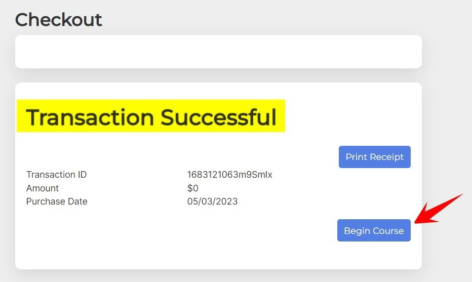 - The Checkout page will indicate a Transaction Successful message if the purchase went well.