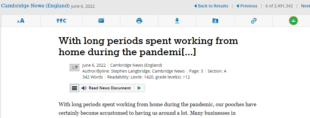 Alternatively you can search all of the resources and use the Read News Document option when available.