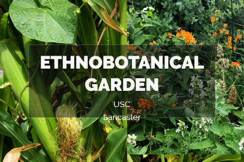 In the back parking lot of the Native American Studies Center are four potted Cross-vine plants supported by bamboo trellises. The Cross-vine’s leaves were used to purify the blood, the stem was used to relieve headaches, and the roots helped cure diphtheria.