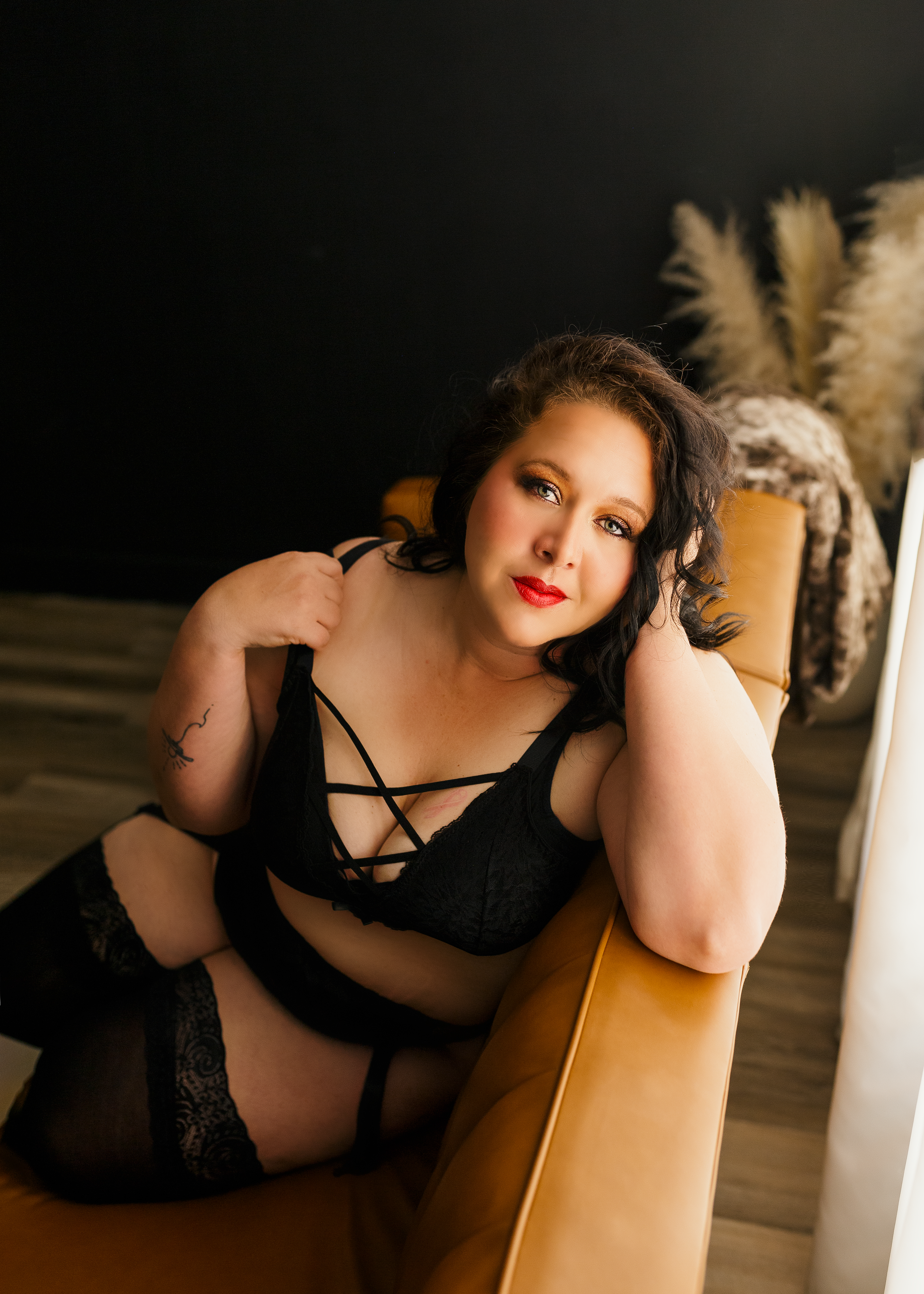 The first hour of your Boudoir adventure kicks off in Hair and Makeup—so come with a fresh, moisturized face and clean, dry hair ready to be styled. Want to go full glam with a dramatic smoky eye? Or just looking for a more natural, effortless vibe? Or maybe you’re totally unsure? No worries at all! Our fabulous HMUA artist will team up with you to craft a look you’ll absolutely love. Once your hair and makeup are on point, we’ll move on to finalizing your wardrobe. We’ll start with the outfits you brought, and if you’re feeling adventurous, I’ll also pull a few fabulous pieces from my boudoir closet for you to try.