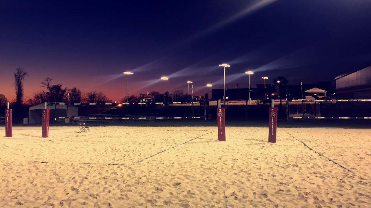 • The complex was the first collegiate beach volleyball facility of its kind and the first ever in the SEC. It features five courts with lights and electronic scoreboards on each court, the first collegiate beach volleyball facility to have this feature. At the end of the complex is a master scoreboard that keeps fans informed with the latest scores on each of the five courts and the overall dual.