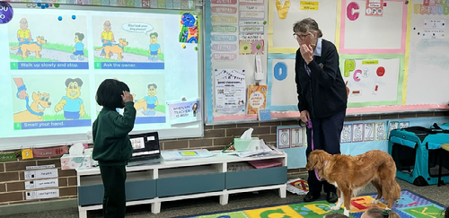 Foundation Incursion This week Foundation students participated in an incursion from the Responsible Pet Ownership Program. During the visit, each Foundation class was able to meet Leonie and her dog Prancer. Prancer was a welcomed visitor who, under Leonie’s guidance, helped students to learn the importance of being safe around dogs. This included, why it is important to ask permission before approaching a dog in the community, what to do if a dog off a leash comes near. Students were also shown how to interact with a dog safely so that the dog remains comfortable with them. Some lucky students even had the chance to show their learning with our special guest Prancer. Fun fact, Prancer received his name, as he was born on Christmas Day. Thank you to Leonie and Prancer for visiting Viewbank Primary School, we hope to see you again.