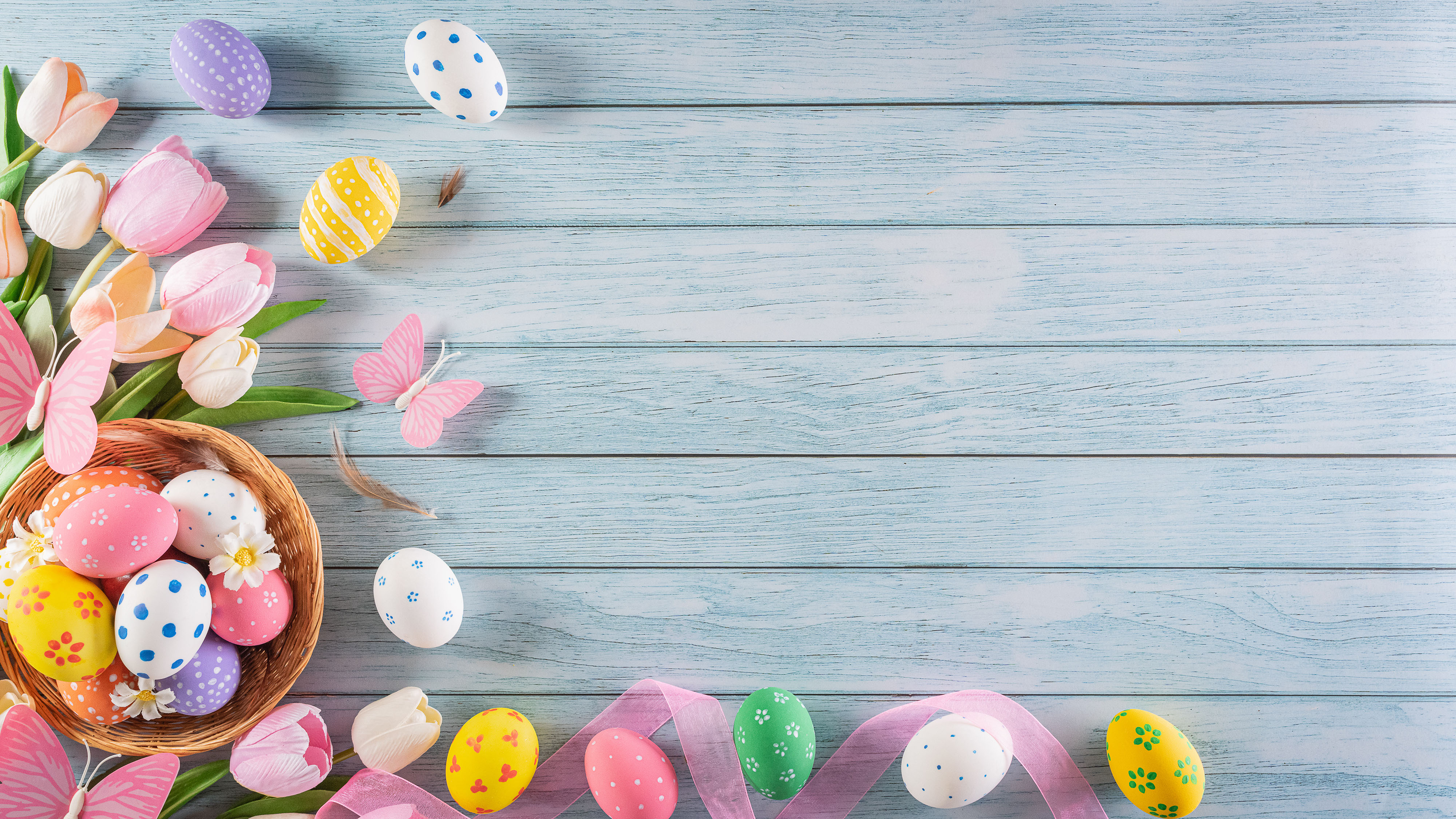 Created with images by Siam - "Happy easter!,Colourful of Easter eggs in the nest with flower on pastel blue wooden background.,Greetings and presents for Easter Day celebrate time.,Flat lay ,top view." • Brad Pict - "Save the date"