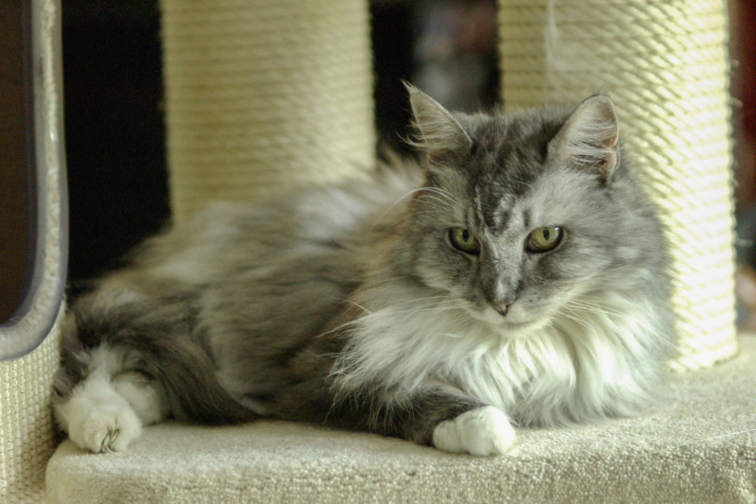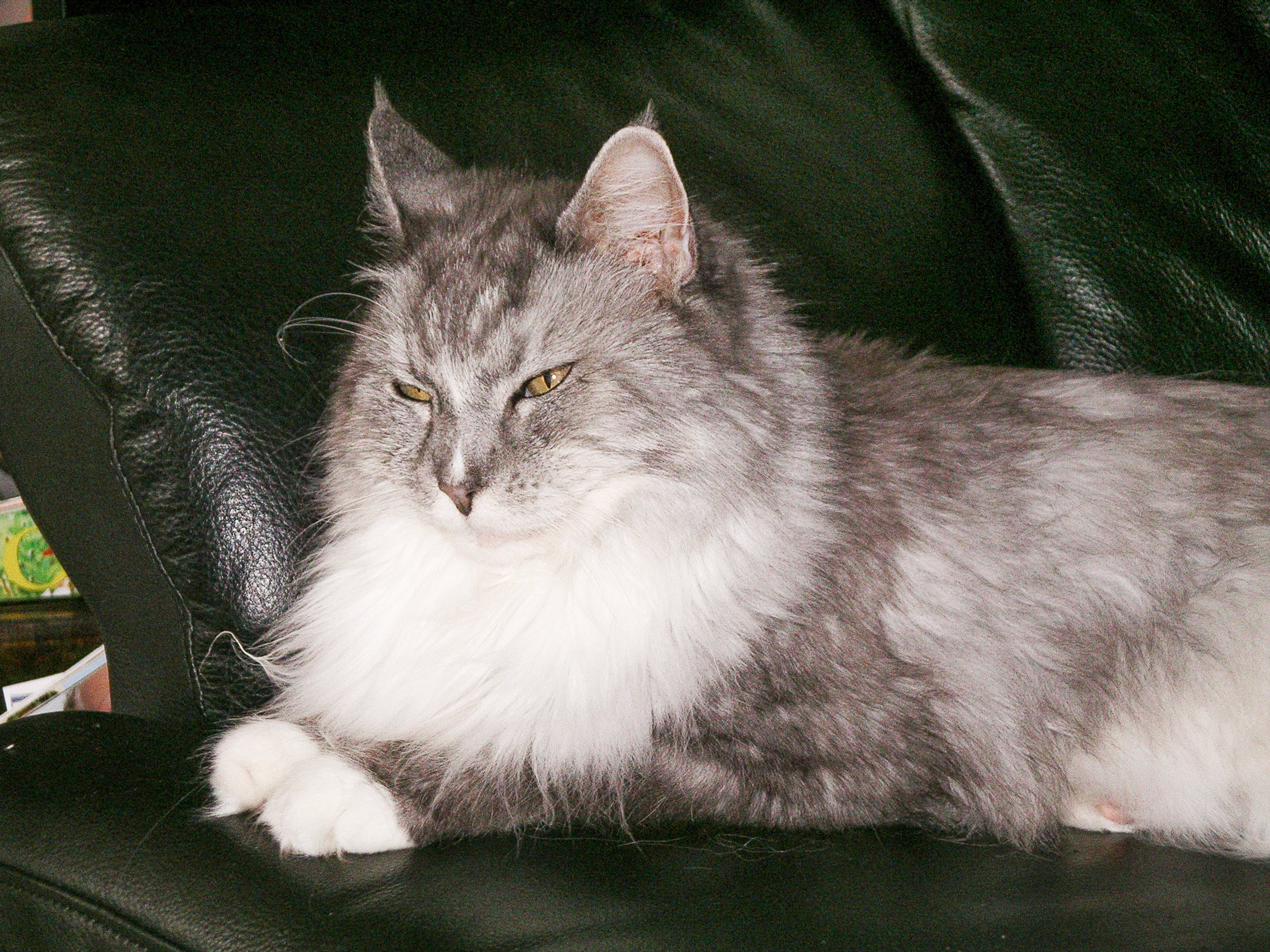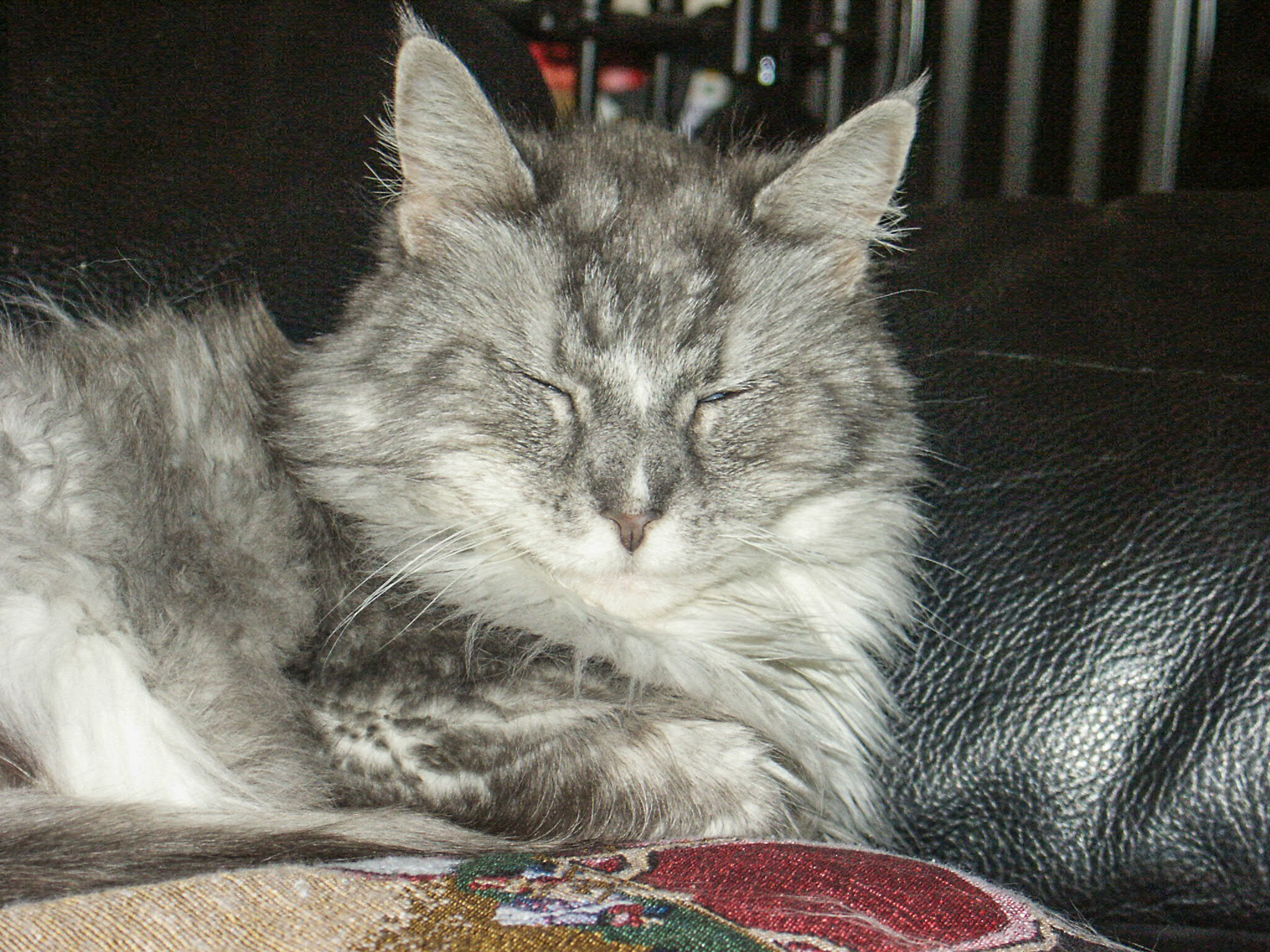 Zeitgleich mit Toulouse kam Berlioz zu uns. Berlioz war unser "Aristocat", ein wunderschöner Maine Coon Kater in Silber, er wurde am 10.05.1992 als Pomery vom Langstteich's geboren und hatte eine Naturbegabung, er konnte nämlich zwei Sprachen; logischerweise die Katzensprache aber auch die Hundesprache, zumindest das Bellen, das hatte er von unserem Chapeau gelernt, einem Bobtail der auch zur Familie gehörte, nun aber leider im Hundehimmel lebt.