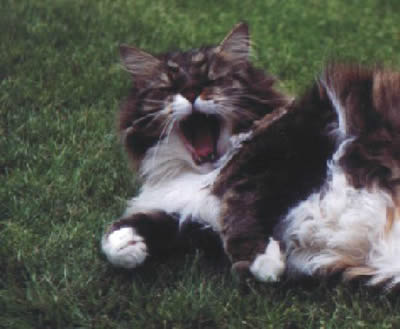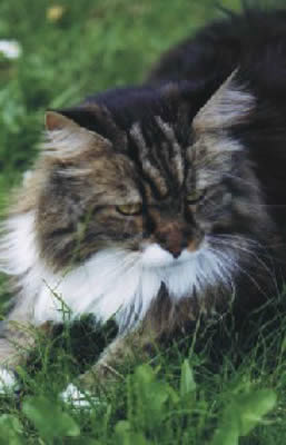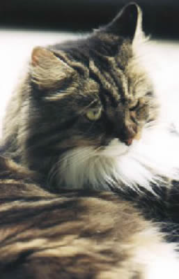 Das war Toulouse, der Urvater unserer sanften Riesen, unser erster Maine Coon Kater, er war von der Statur nicht wirklich ein Riese, aber vom Charkter ein wahrer Gigant, unser Sonnenschein. Ein genialer Mäusefänger, Baum-rauf-Kletterer und Sänger. Er schafft es beim Fressen zu knurren, falls jemand ihm die Leckerbissen klauen wollte, was dadurch natürlich niemandem gelang! Kaum nahm man ihn auf den Arm, stellte er seine Brumme an, er hat uns unendlich schöne, unvergessliche Momente bereitet. Er wurde am15.04.1992 als Amigo vom Langstteich's geboren.
