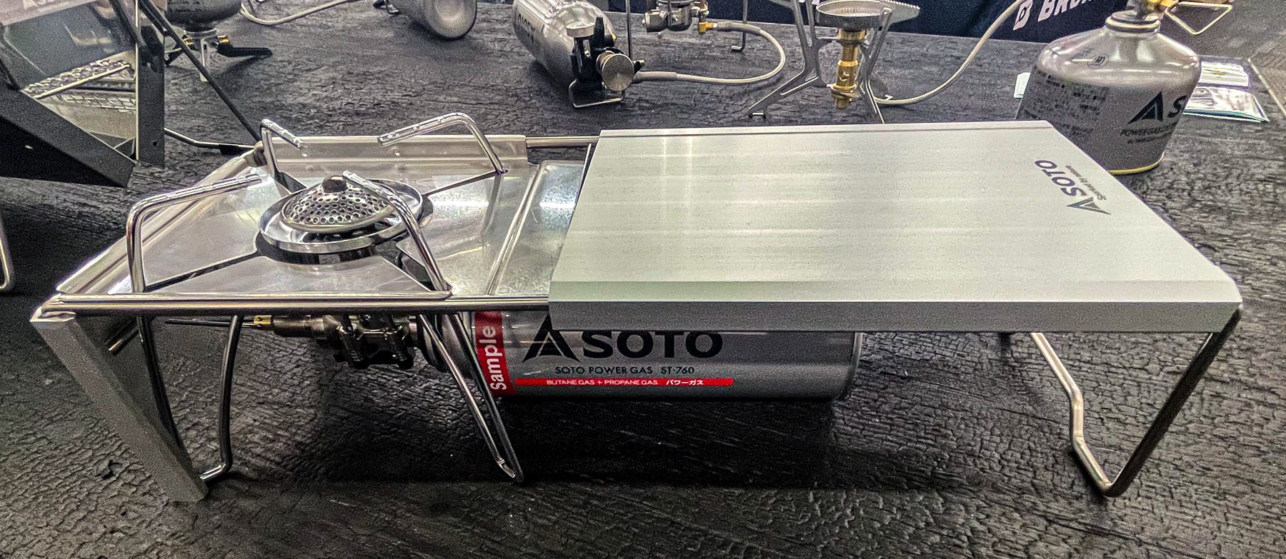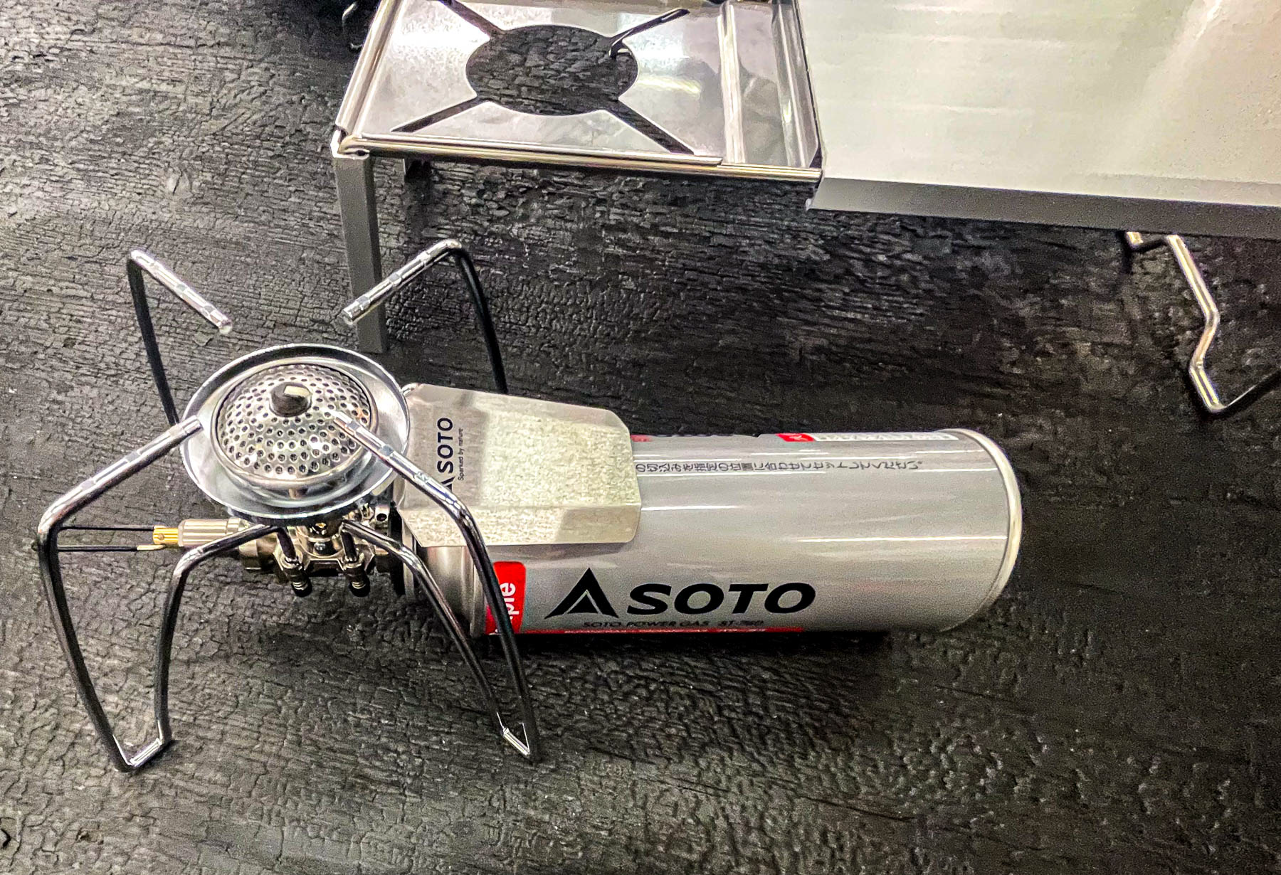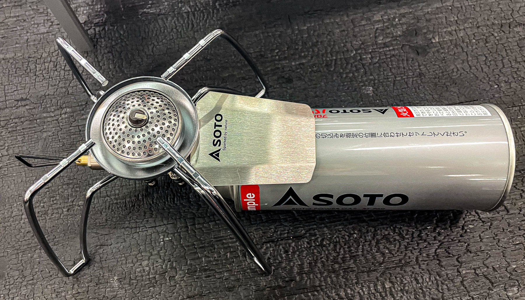 „Deckt den Boden eines mittelgroßen Herdes großflächig ab und erhöht die Heizleistung auf 3,3 kW (2.800 kcal/h). Der Mikroregler beseitigt die Schwachstelle der CB-Dose, die aufgrund der niedrigen Außenlufttemperatur tendenziell zu einem Rückgang der Wärmeleistung führt. Auch in einer Umgebung mit einer Außentemperatur von 25°C bis 5°C weist er immer eine konstante Heizleistung auf. Zusätzlich zu den Eigenschaften des Mikroreglers, der bei Dauergebrauch weniger anfällig für Herunterfallen ist, ist der 66-mm-Krater mit mittelgroßen (11–19 cm) Kochutensilien kompatibel, und den Boden der Kochutensilien gleichmäßig erhitzt.“
