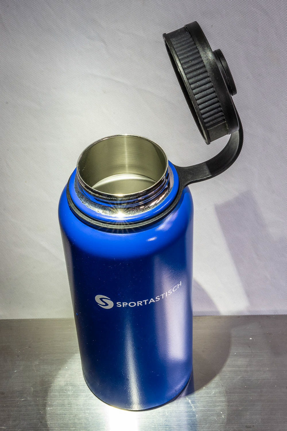 Da geht was rein, genau 1 Liter. Die doppelwandige Weithals-Trinkflasche Hydro Boost aus Edelstahl soll heiße Getränke (Tee, Suppen etc.) 12 Stunden warm und kalte Getränke 24 Stunden kühl halten. Das werden wir natürlich überprüfen. Durch die große Öffnung (5,5 cm) können auch Eiswürfel eingefüllt werden und ist somit auch gut zu reinigen! Die Flasche ist bruchsicher, rostfrei, BPA-frei, lebensmittelecht und wiegt nur 390 g. Wir haben sie bei Sportastisch entdeckt, dort wird sie für 24,99 € angeboten inklusive 3 Jahre Garantie.
