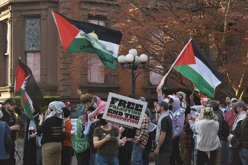 Itamar Ben-Gvir, the Israeli national security minister who has been indicted in Israel for racism and support for a terrorist organization, spoke to the Jewish society Shabtai Wednesday night. His visit was met with hundreds of protesters.
