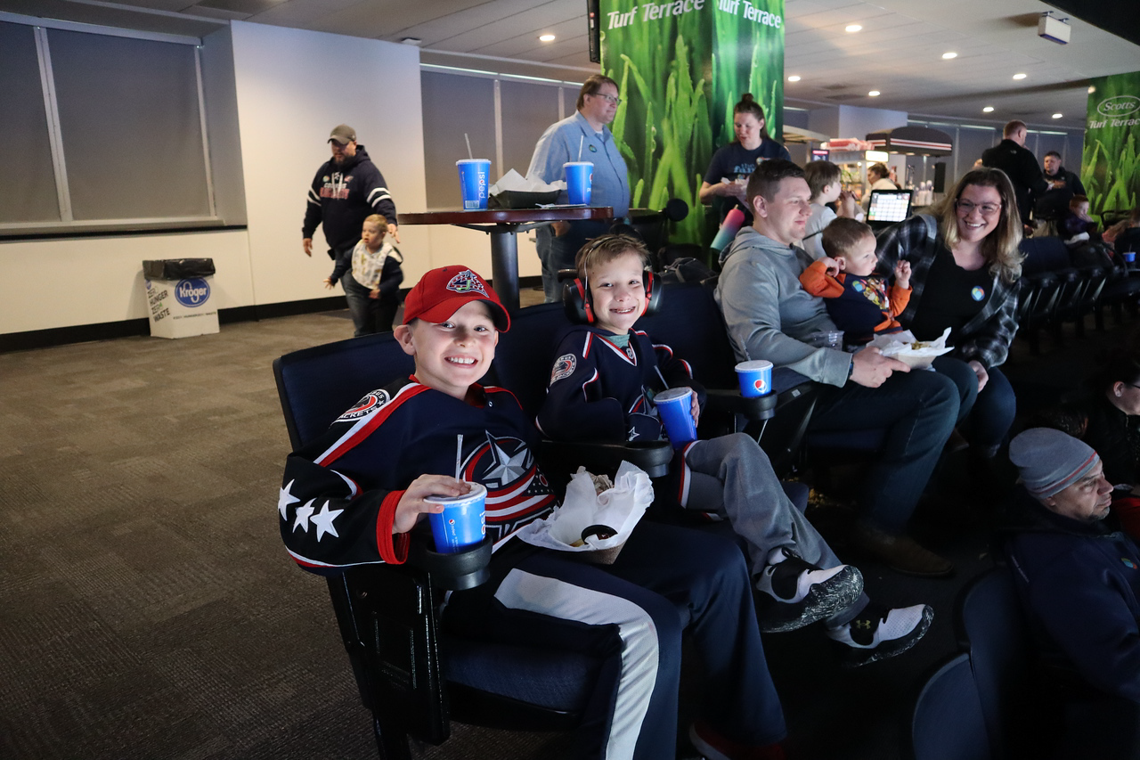 Included parking, reserved seating, food vouchers, Blue Jackets sling bag with activities, and an opportunity to go on to the ice rink for a shot on goal.