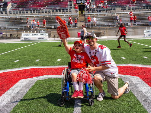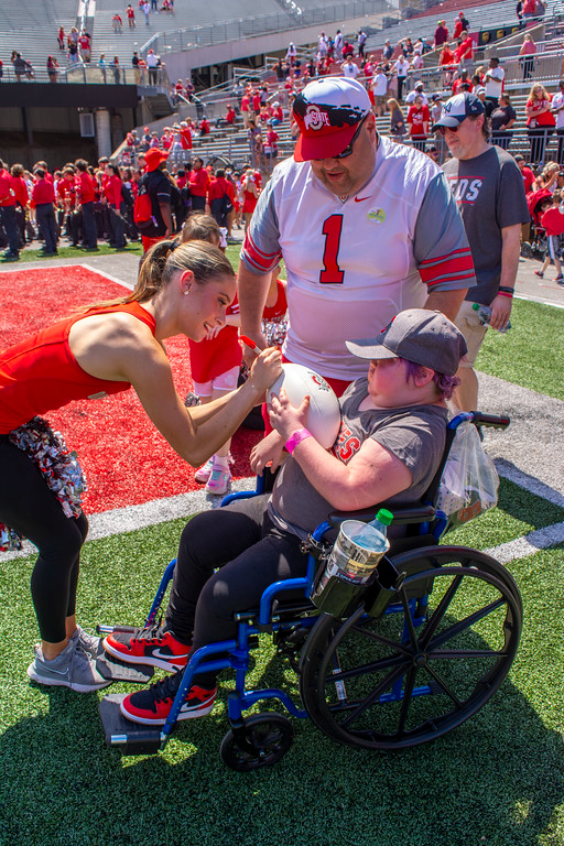 Included tickets, food vouchers, pom-poms, a visit from Brutus Buckeye, and an opportunity to go on the field after the game for pictures and autographs.