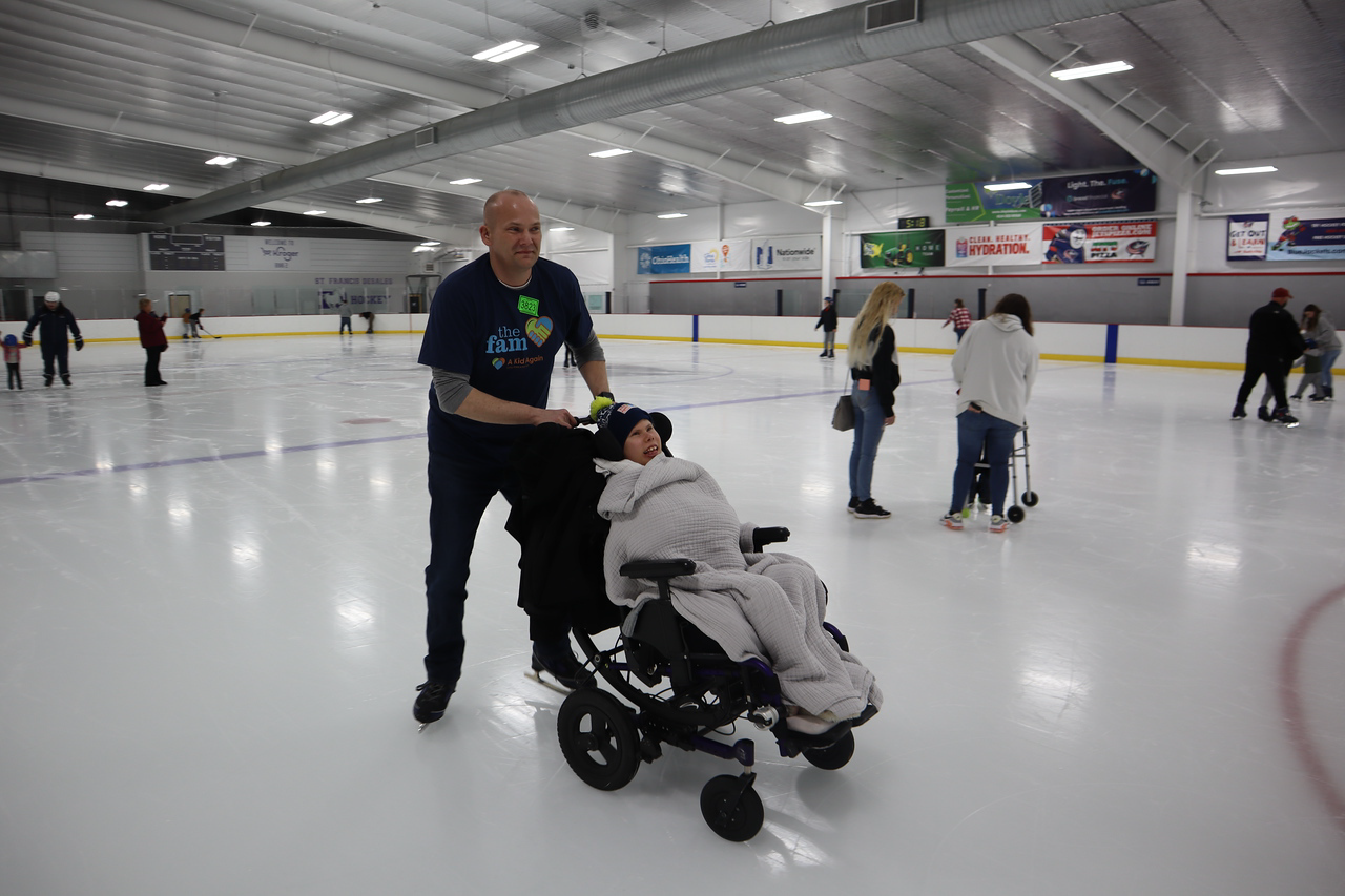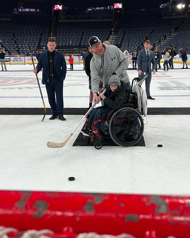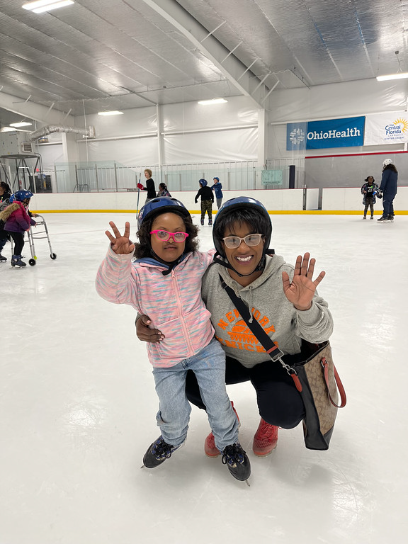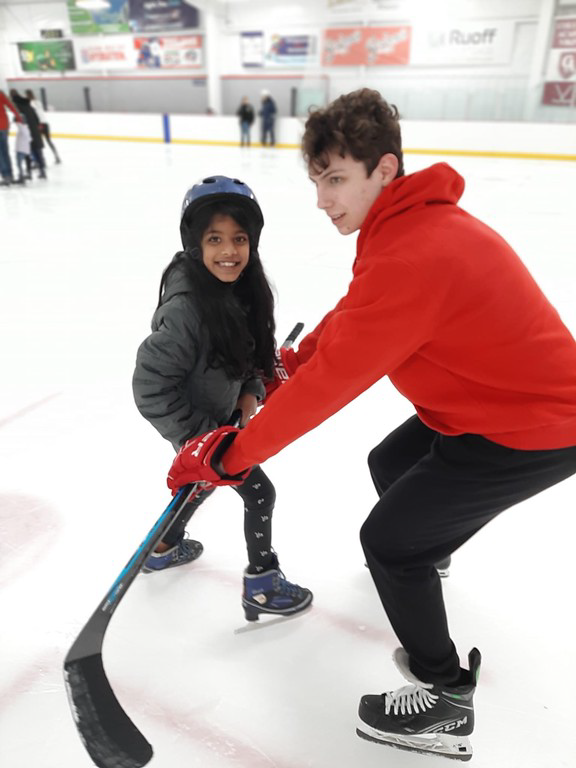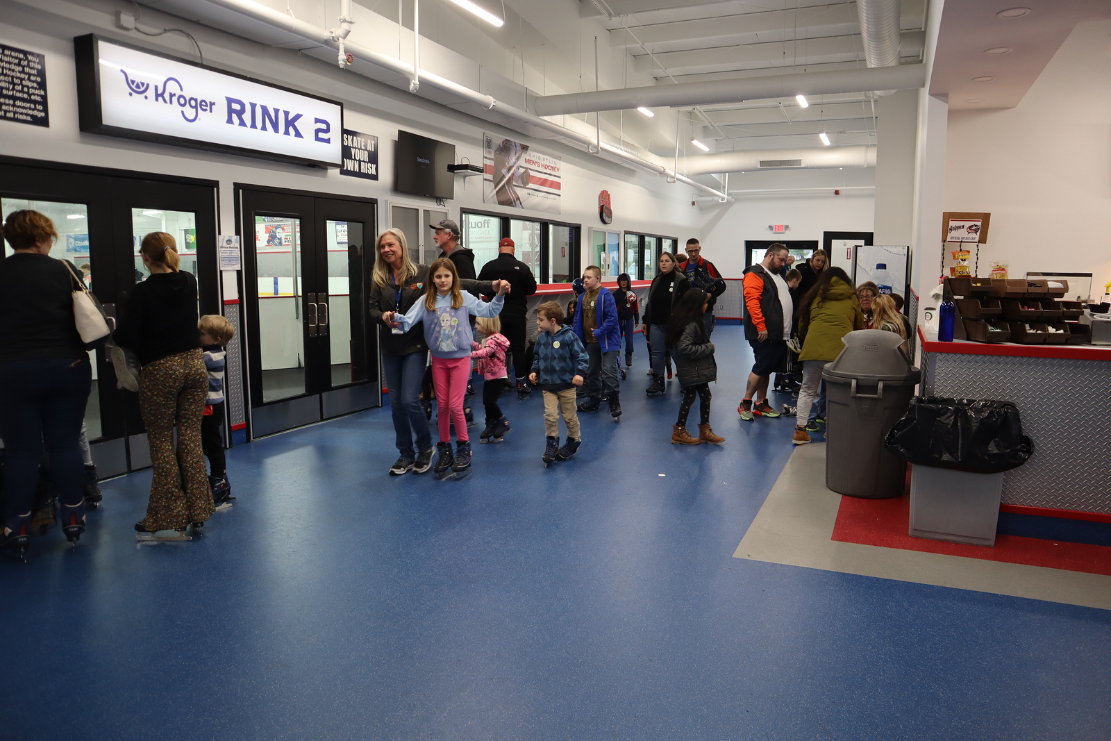 Included ice skating, Q&A with staff and families, pizza party, and a mini-hockey stick.