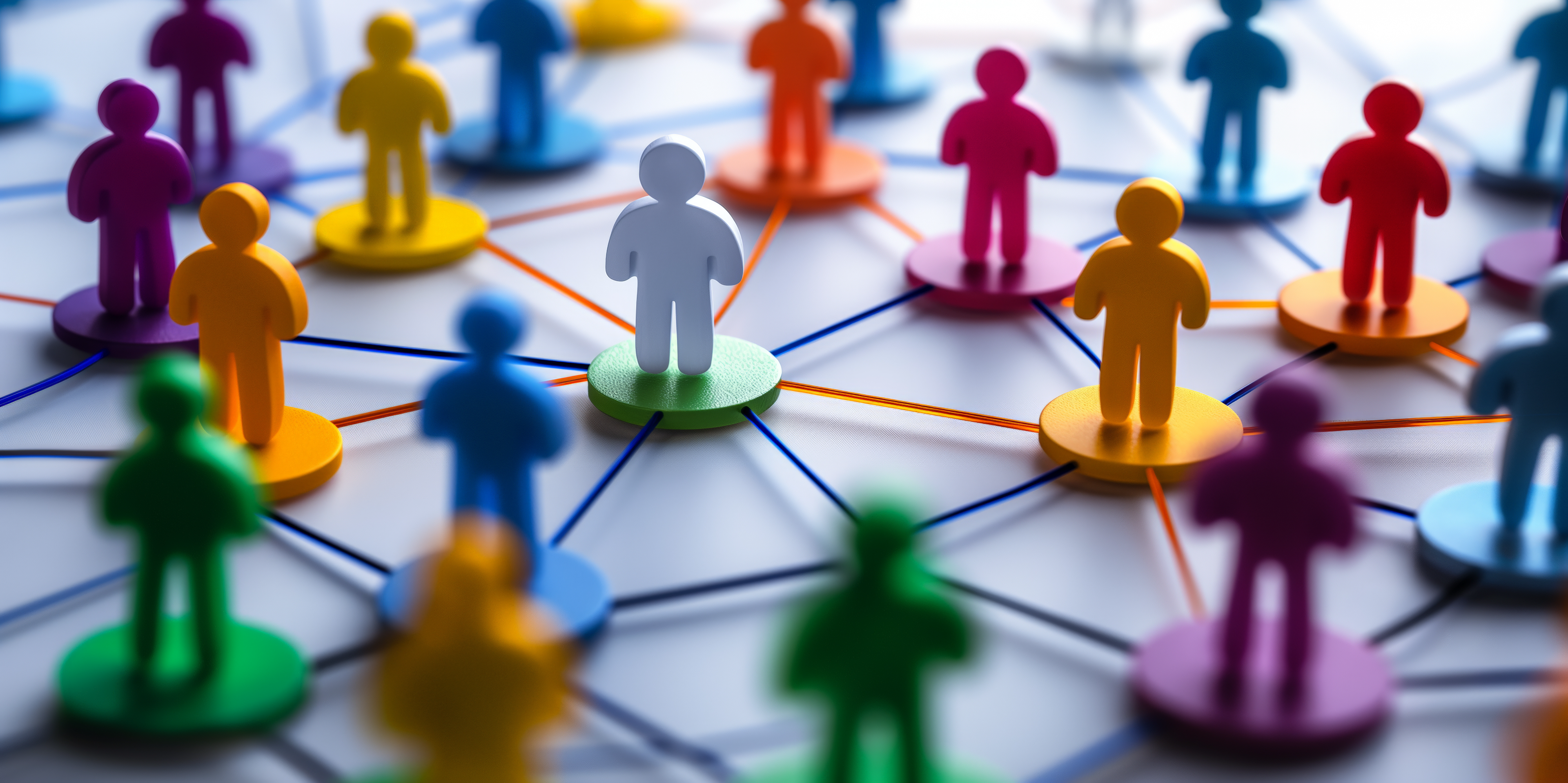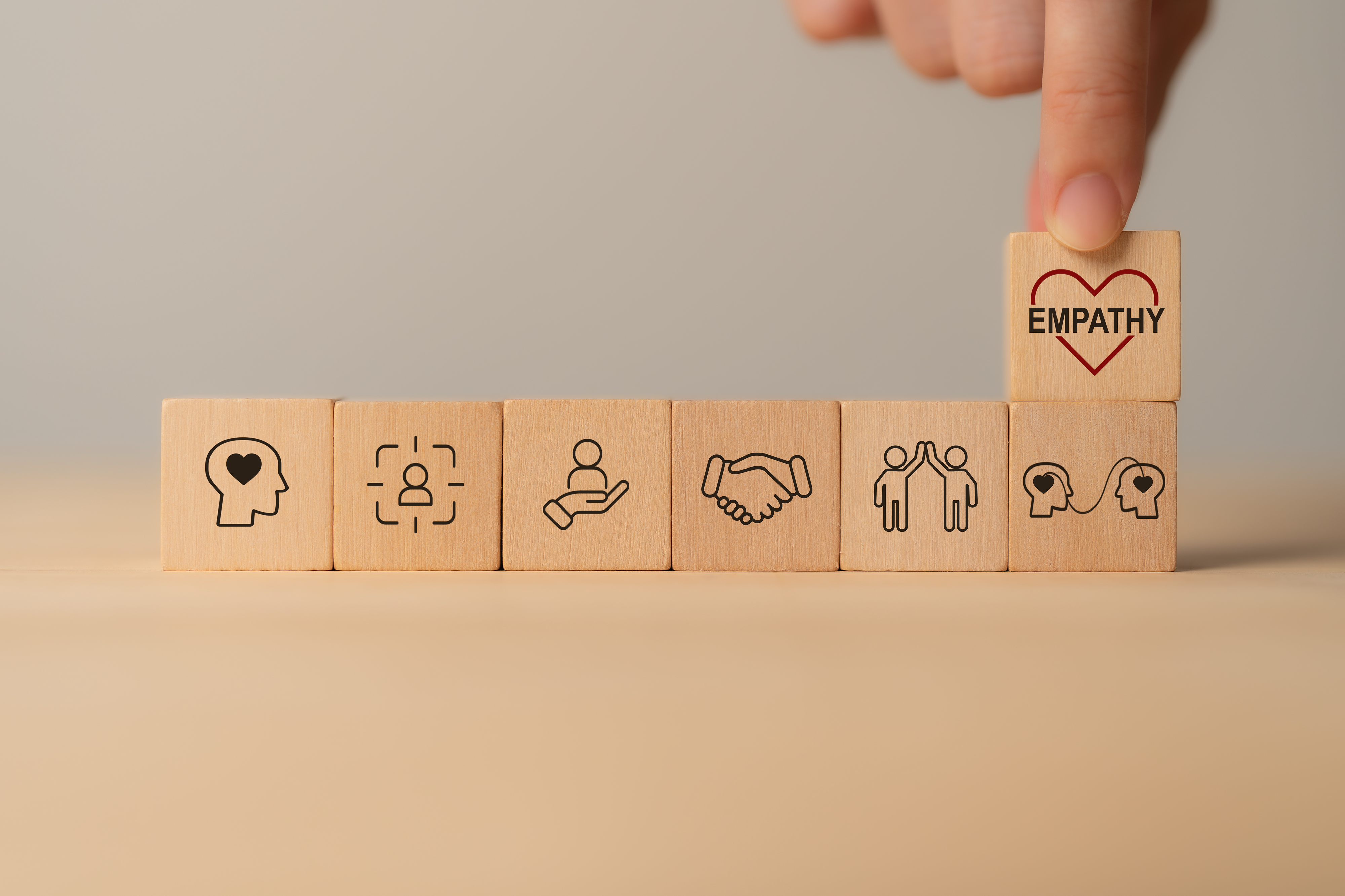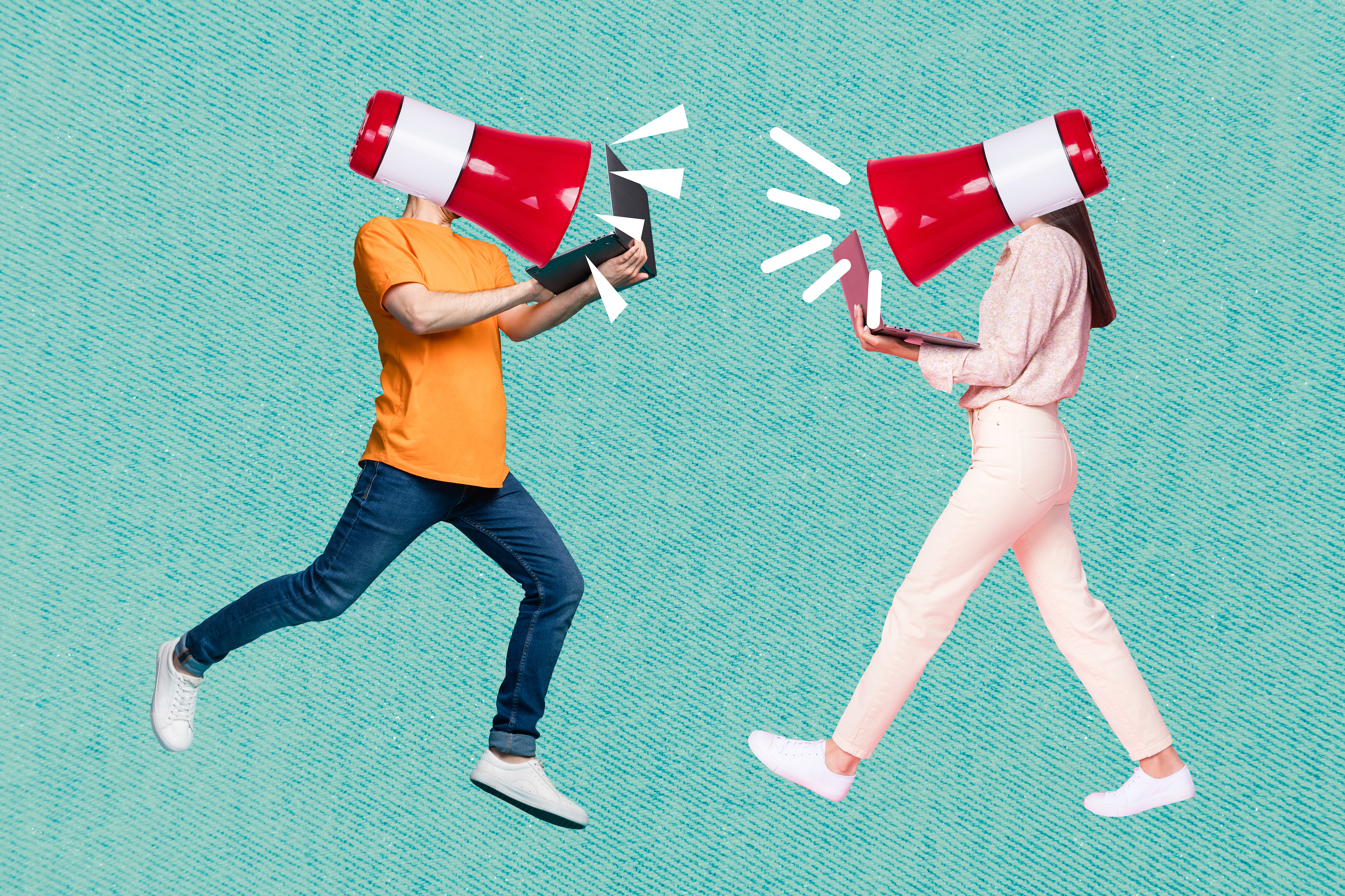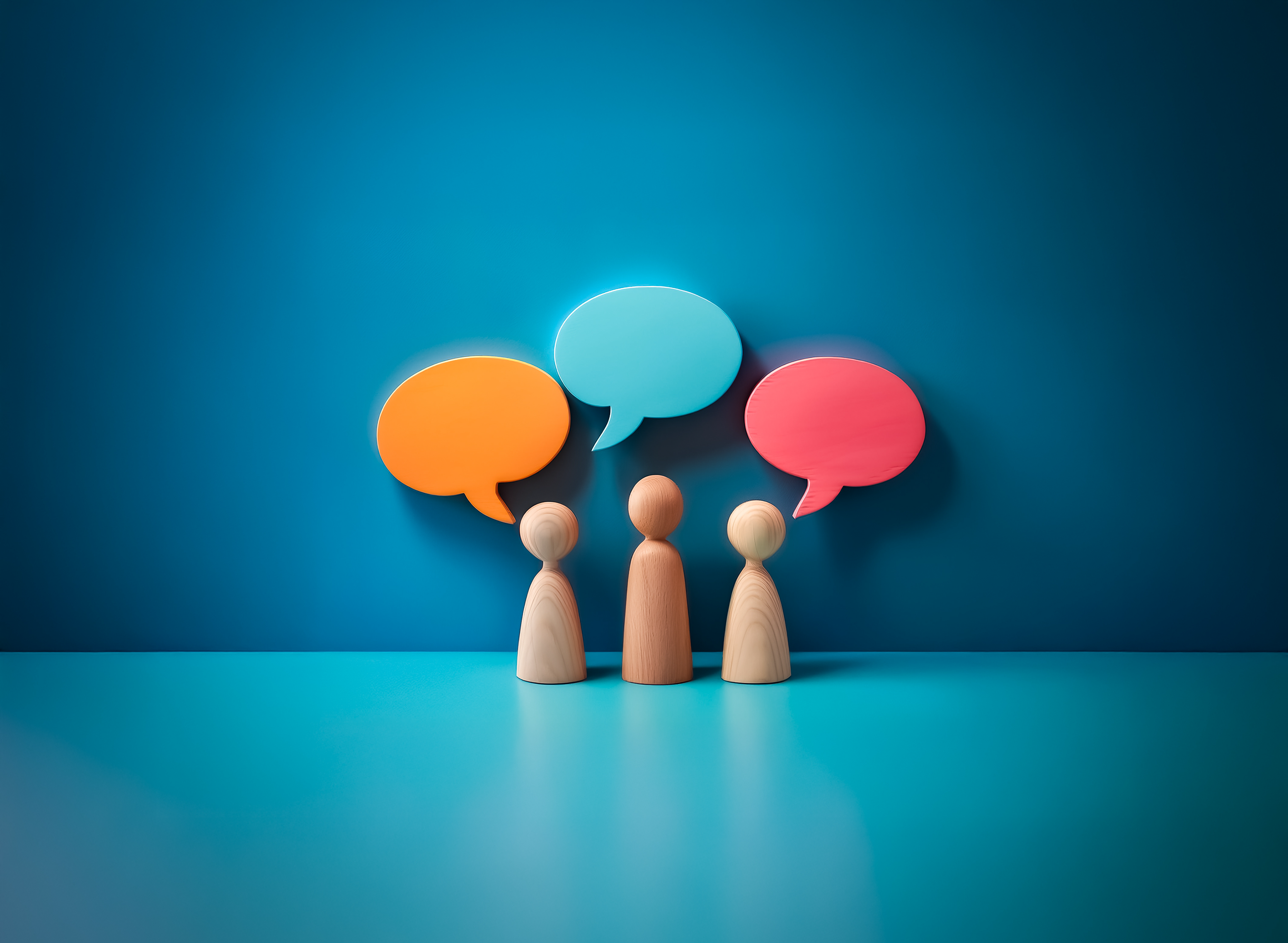 Created with images by joeycheung - "Three wooden figures stand beneath vibrant speech bubbles against a blue backdrop, symbolizing communication, ideas, and collaborative discussions." • bychykhin - "Bright note with the phrase Dont miss the deadline" • deagreez - "Creative photo of young coworkers remote project managers announcement orators head megaphone hold netbook isolated on blue color background" • Jacob Lund - "Stack of hands showing unity and teamwork" • Parradee - "Empathy concept. Wooden blocks with empathy icons on minimal background and copy space. The power of emotional intelligent, soft skill development. Empathy in the workplace, good leaders, good teams. " • jirsak - "Coach motivate to personal development" • IBEX.Media - "Colorful figures connected by lines illustrating social media networks and interactions"