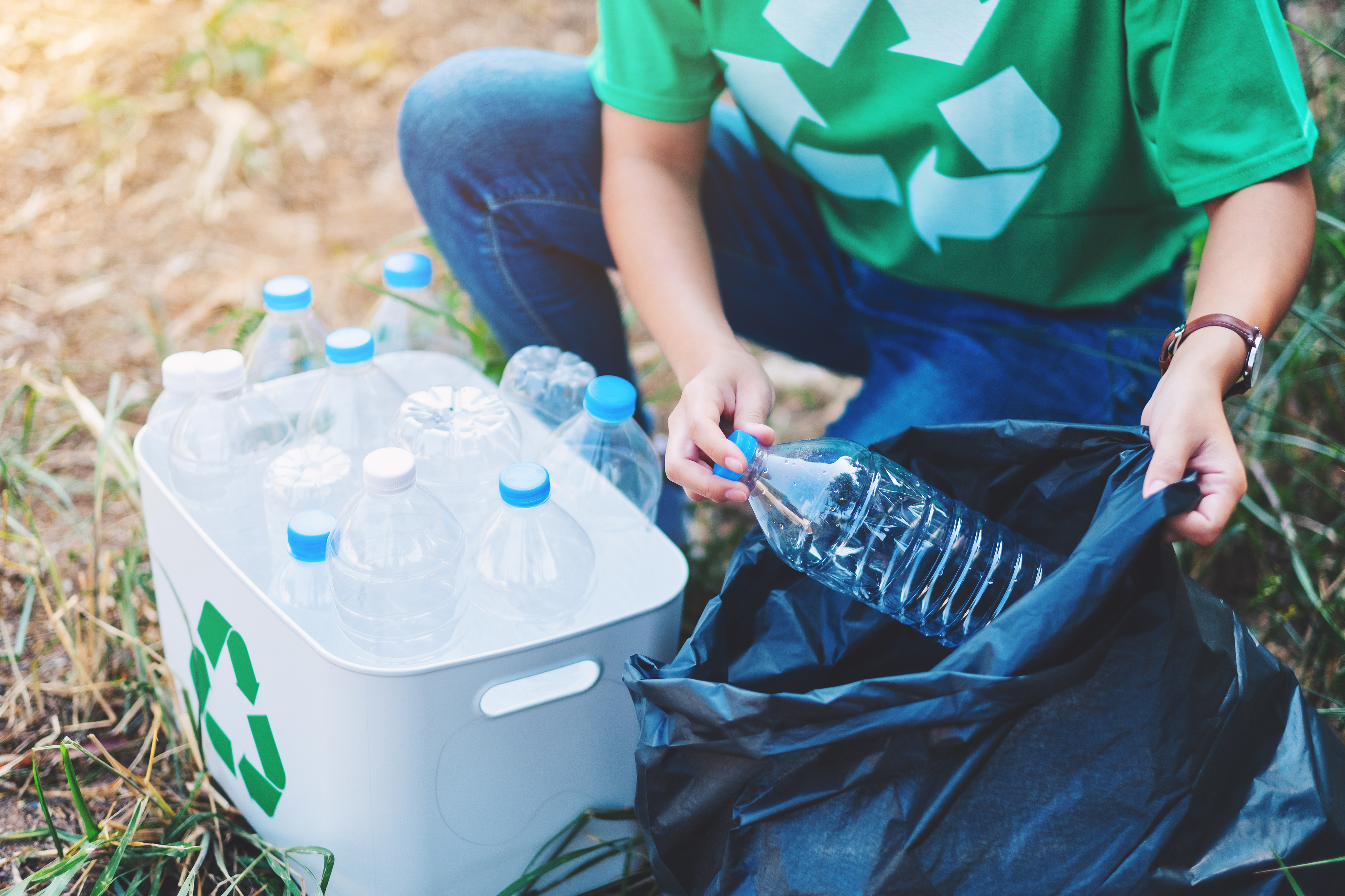 Created with images by Farknot Architect - "A woman picking up garbage plastic bottles into a box and plastic bag for recycling concept" • saravuth - "garbage dump pile in trash dump or landfill,backhoe and truck is dumping the gabage from municipal,garbage dump whit old garbage truck and dark clouds or rain clouds ." • LIGHTFIELD STUDIOS - "back view of students with backpacks walking on street" • Farknot Architect - "Closeup image of a woman's finger pressing on the enter button of laptop computer on the table" • chandlervid85 - "Building tools repair set on wooden background. Top view. Copyspace" • Prostock-studio - "Smiling girl bying clothes in showroom" • siewwy84 - "Modern fashion women clothes hang on stanless steel hangers rack at department store." • brostock - "Colorful women's dresses on hangers in a retail shop" • Nomad_Soul - "Woman choosing clothes in clothing store" • borabalbey - "Reusable water bottle on a concrete background" • Viacheslav Yakobchuk - "Pleasant cooperation. Joyful positive nice volunteers standing around the tree and caring about it while working in team"