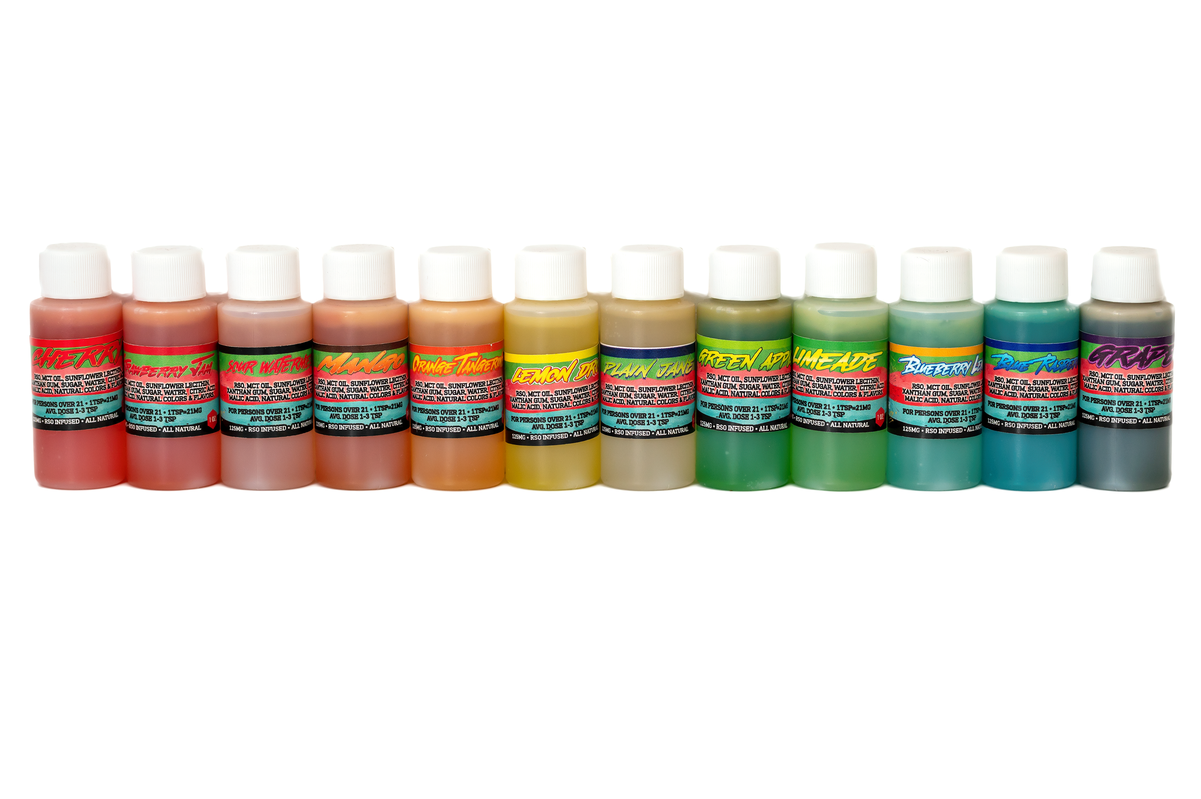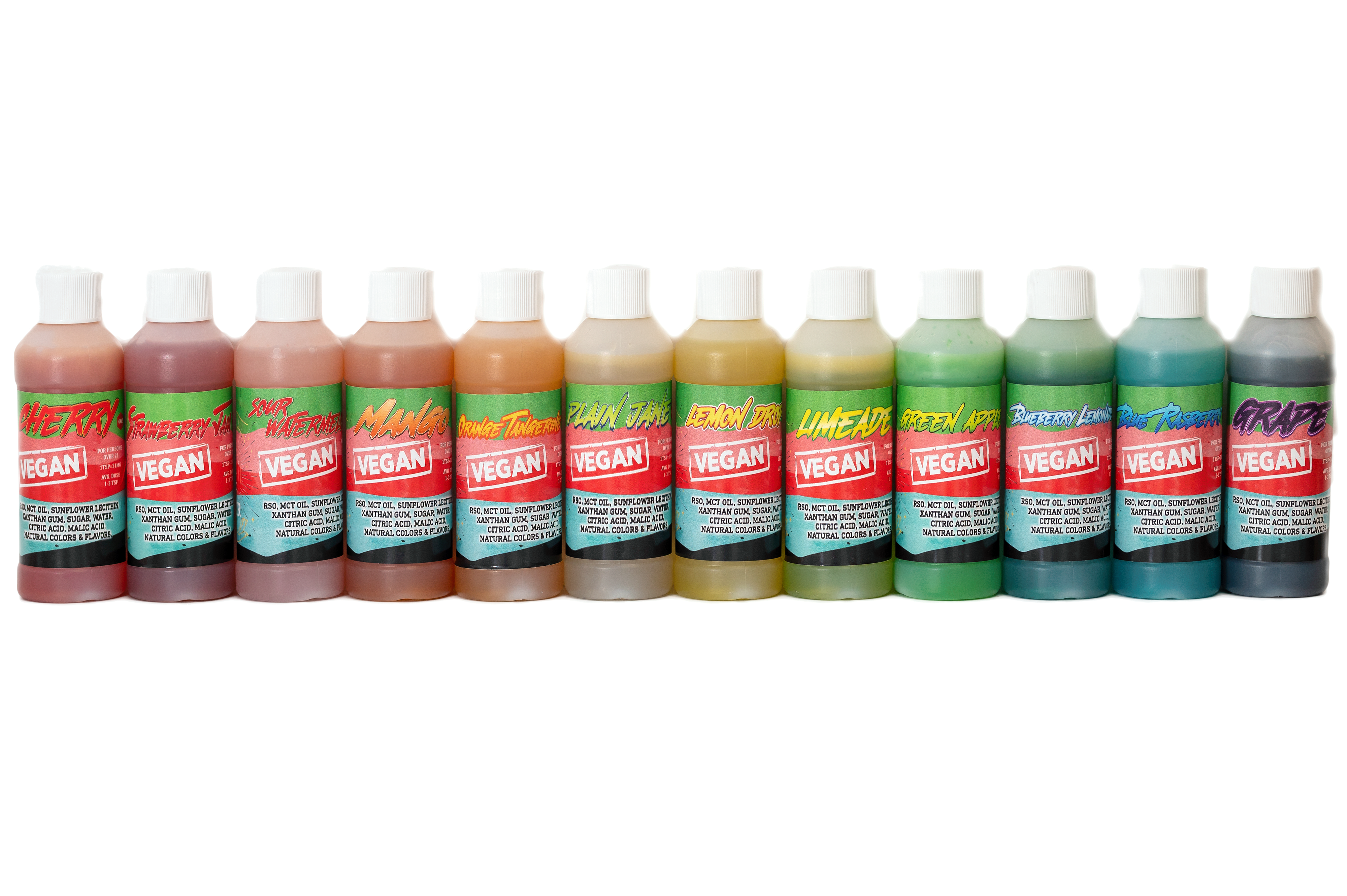Cherry | Limeade | Grape | Sour Watermelon | Plain Jane | Lemon Drop | Blue Raspberry | Mango | Blueberry Lemonade | Green Apple | Orange Tangerine | Pineapple