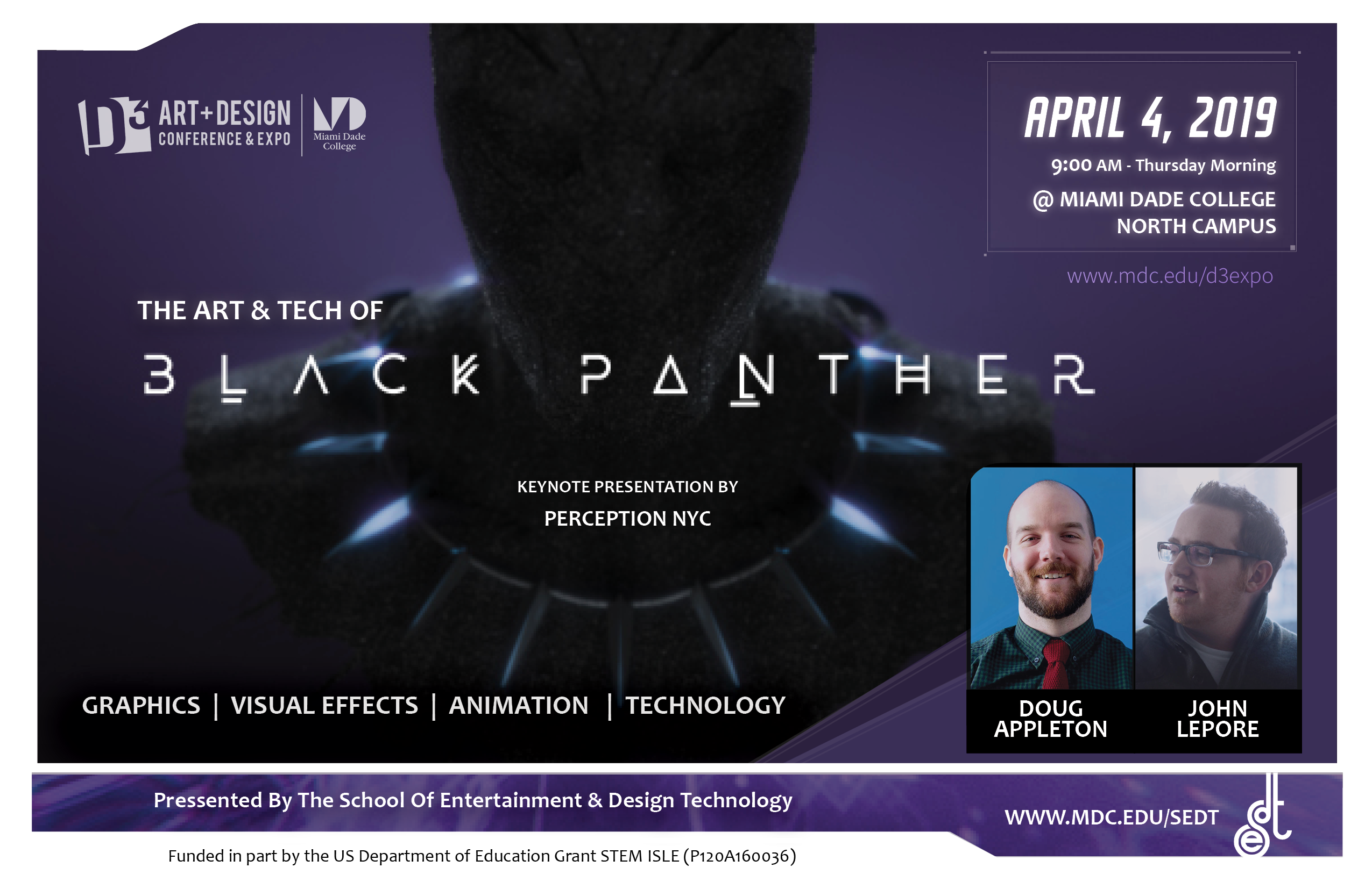 The School of Entertainment & Design Technology will host its 5th annual event at Miami Dade College - North Campus, Tuesday April 2nd, through Thursday April 4th, 2019.