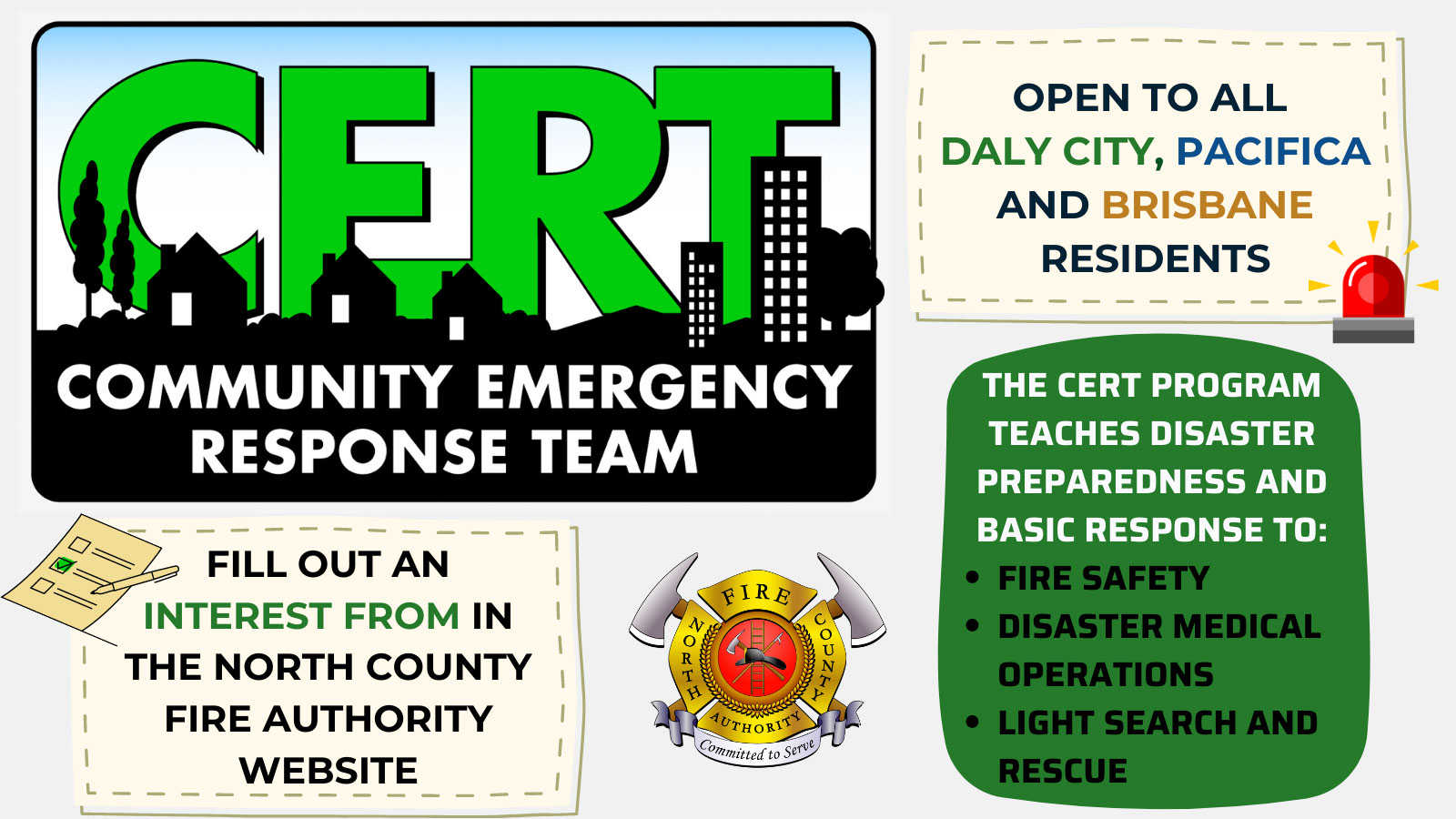 Following a major disaster, police, fire, and medical professionals may not be able to fully meet the demand to respond to emergencies. People will have to rely on each other to provide immediate assistance and life-saving and sustaining needs. Through CERT training, cities provide information to its residents about how to prepare and handle disasters and reduce the risk of dangers inside and outside of their homes. Equip yourself, your family, and community with life saving skills for potential severe emergencies and disasters. Fill out an interest form through the North County Fire Authority website to attend local CERT classes.