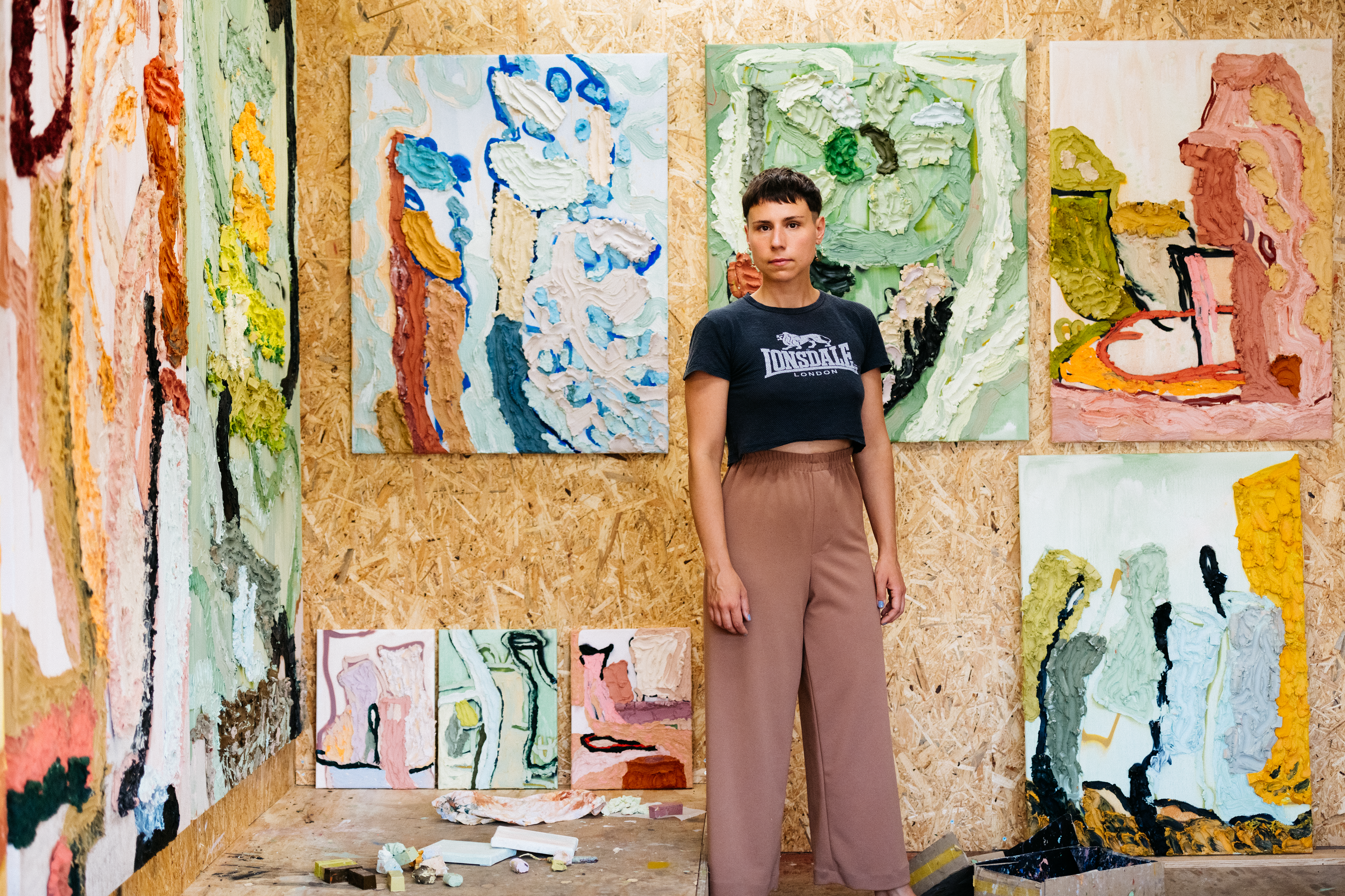 Trained at the École Spéciale d’Architecture in Paris, Natacha Mankowski (Paris, FR, 1986) worked as an architect alongside Jean Nouvel and Vito Acconci before turning to painting. Her architectural background still resonates strongly in her paintings. Defying the boundaries between different artistic disciplines, Mankowski’s work is characterized by an exuberant use of the impasto technique. The way she employs this technique allows her to create textural and spatial structures in her paintings that moves them into the realm of sculpture. In her new work Natacha Mankowski has intensified this spatial and sculptural effect by working with larger formats. With many of these new paintings weighing 15 to 20 kilograms and more, they acquire a singular sense of gravity and presence; indeed, these paintings are objects that themselves inhabit a space alongside the viewers.