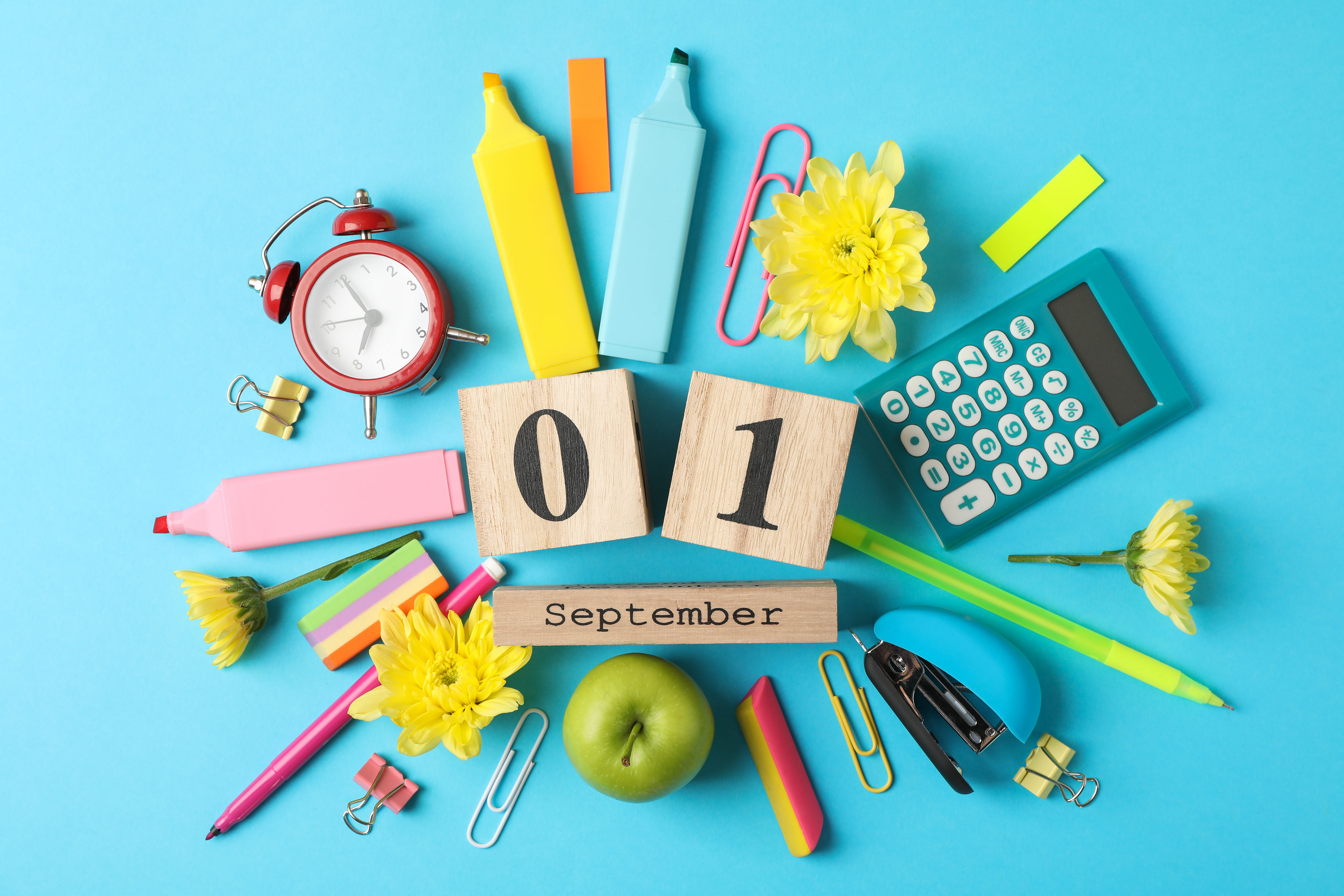 Created with images by Sunny studio - "Family having fun on summer vacation" • Atlas - "Wooden calendar with 1 september and school supplies on blue background" • tamayura39 - "PTA" • kukumalu - "thank you message" • obpia30 - "clock time alarm clock"