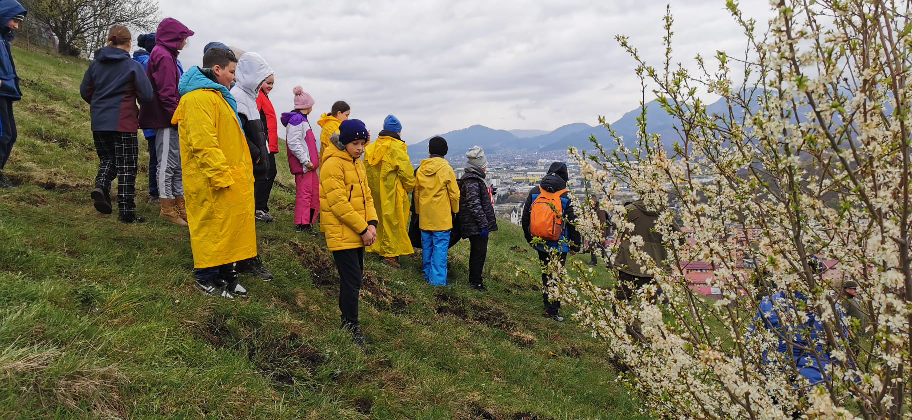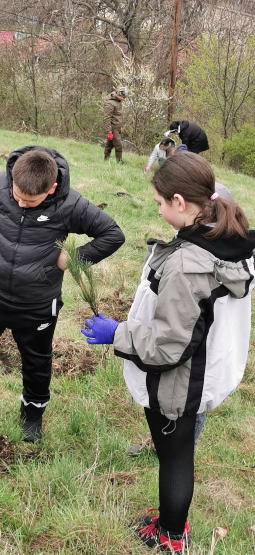 Mie mi-a plăcut excursia de azi deoarece am făcut mișcare și am plantat mai mulți copaci decât am poluat. (Alexia)