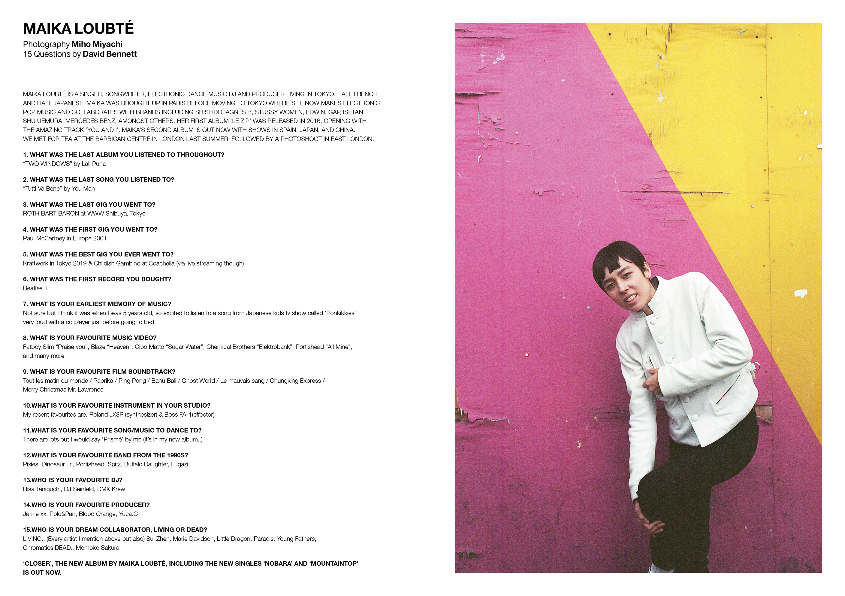 Maika Loubté is a Tokyo-based electronic artist, producer, and singer known for her colorful blend of synth-pop, electronic, and experimental sounds. With bilingual lyrics and a cross-cultural sensibility shaped by her upbringing in Paris, Yokohama, and Hong Kong, she creates music that bridges boundaries — between analog and digital, East and West, the intimate and the futuristic. From vintage synths and dreamy textures to emotionally charged songwriting, Maika creates soundscapes that explore memory, identity, and connection. On stage, her magnetic presence and genre-defying live sets have the rare power to captivate both underground electronic listeners and mainstream pop audiences alike—bridging worlds through sound, movement, and pure emotion.