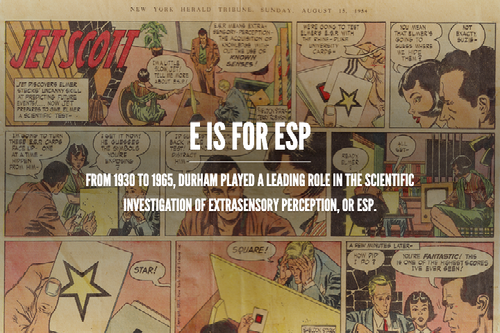 Durham A-Z: E is for ESP was originally on display at the Museum of Durham History in 2015. The original curators were Katie Spencer, Amelia Bacleda, Michele Kloda, and Beth Morris Weiss.