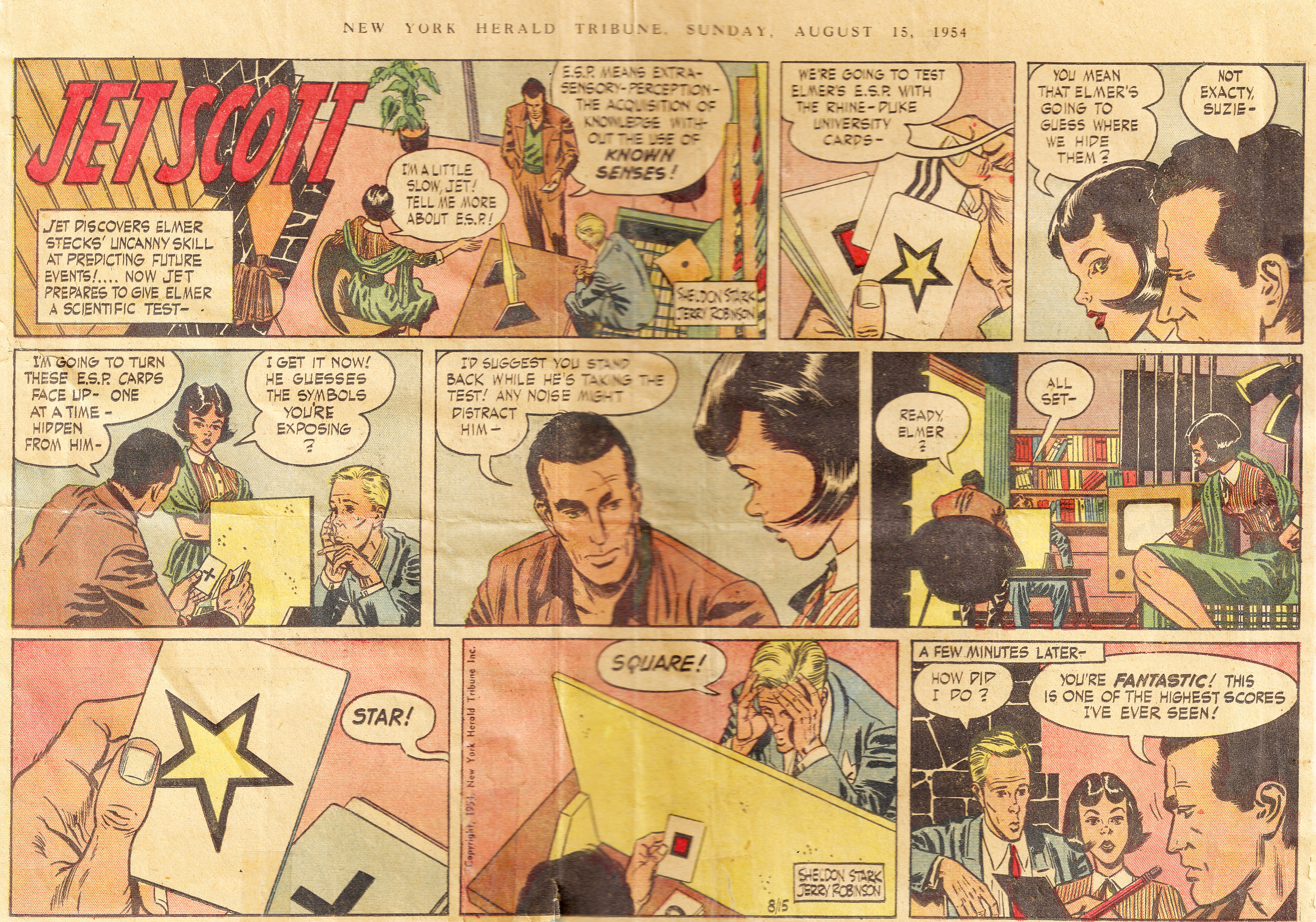 Above: Comic strip featuring ESP tests, published in the New York Herald Tribune, 1954.