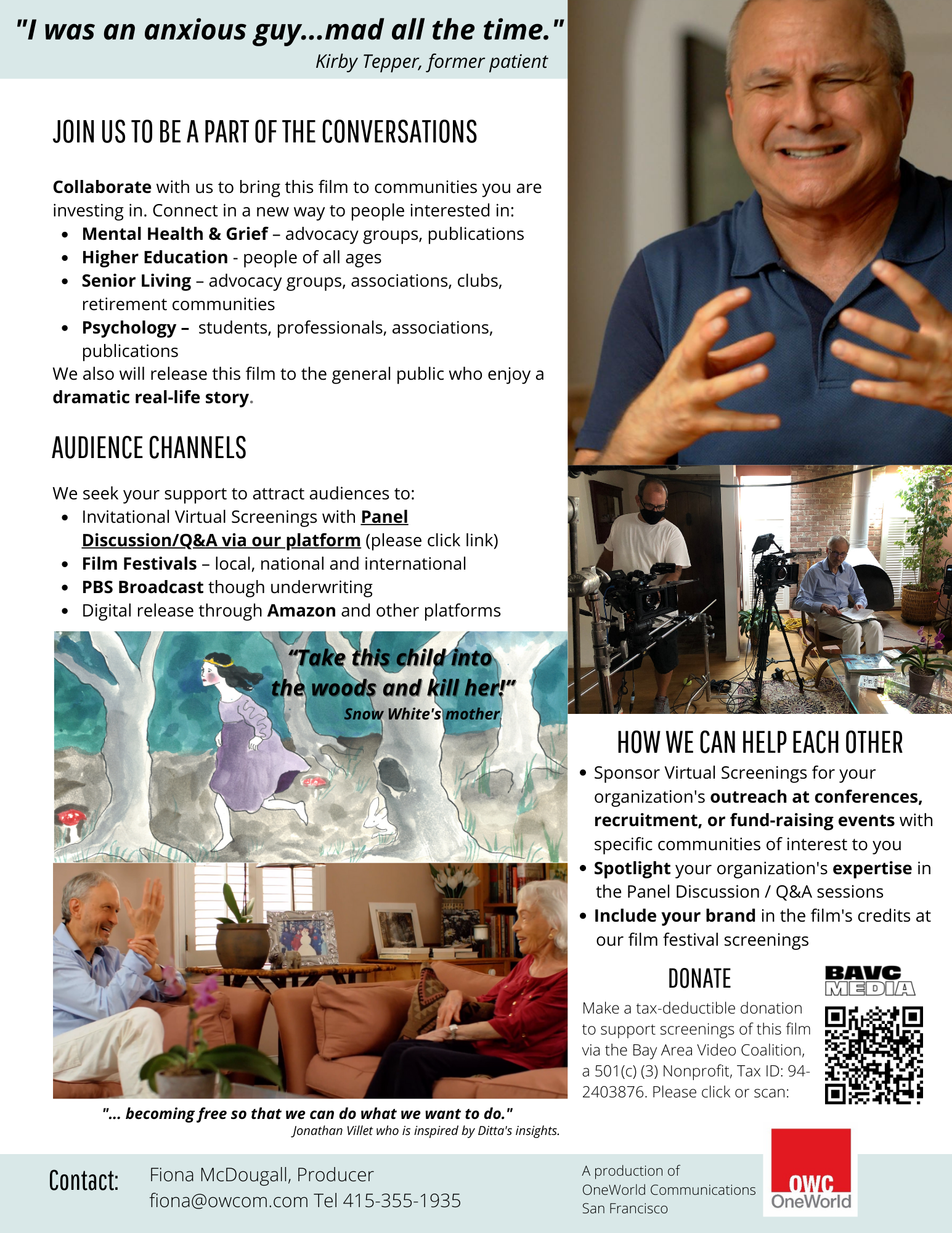 For live and virtual screening opportunities, & partnership opportunities to bring this important story to your community, please contact: Fiona @ owcom.com or Tel. +415 355 1935