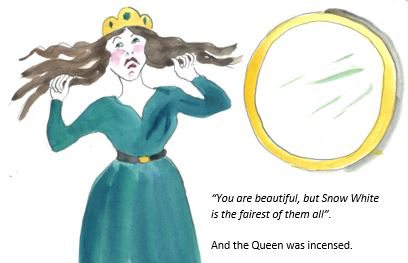 For Finding Snow White, Ann designed and created unique pen and watercolor drawings to accompany each beat of the Snow White fairytale.
