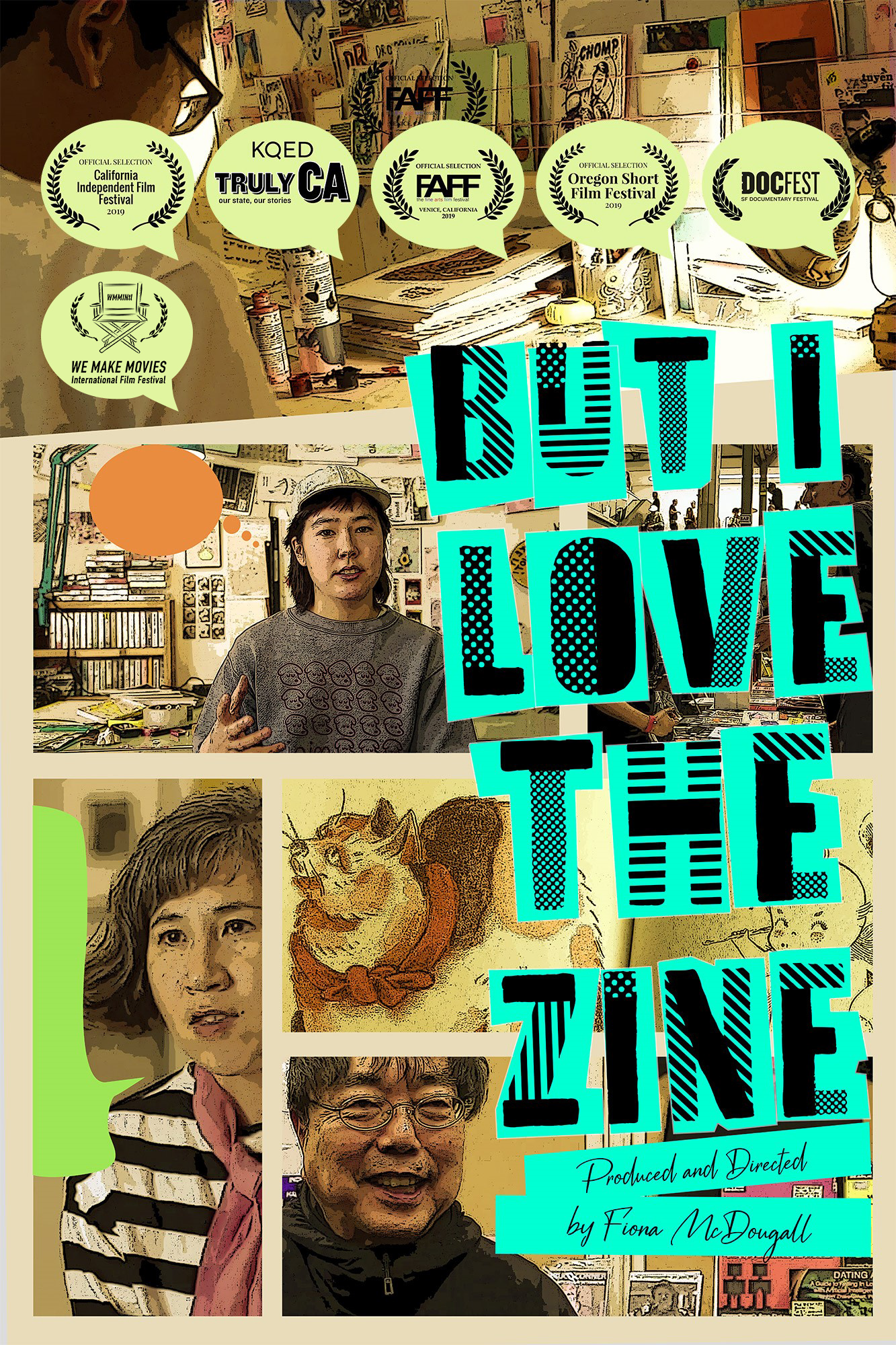 Fiona shot produced and directed, But I Love the Zine,Jonathan Villet wrote the script. The doc was screened at several film festivals in 2019 and nominated for Best Documentary, We Make Movies International Film Festival 2021.