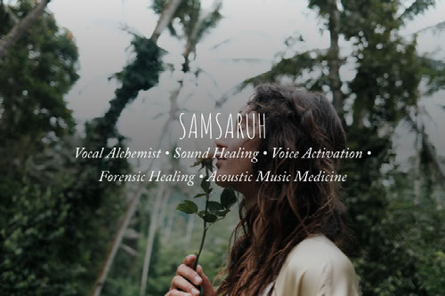 Poetess and Vocal alchemist Samsaruh has been evoking deep healing in others through Voice since childhood. Now an independent self-producing artist igniting healing through her music with Voice and Sound alchemy, Solfeggio frequencies, Downloads, Ancient medicine prayers, Liquid Poetry, Mantras and much more.