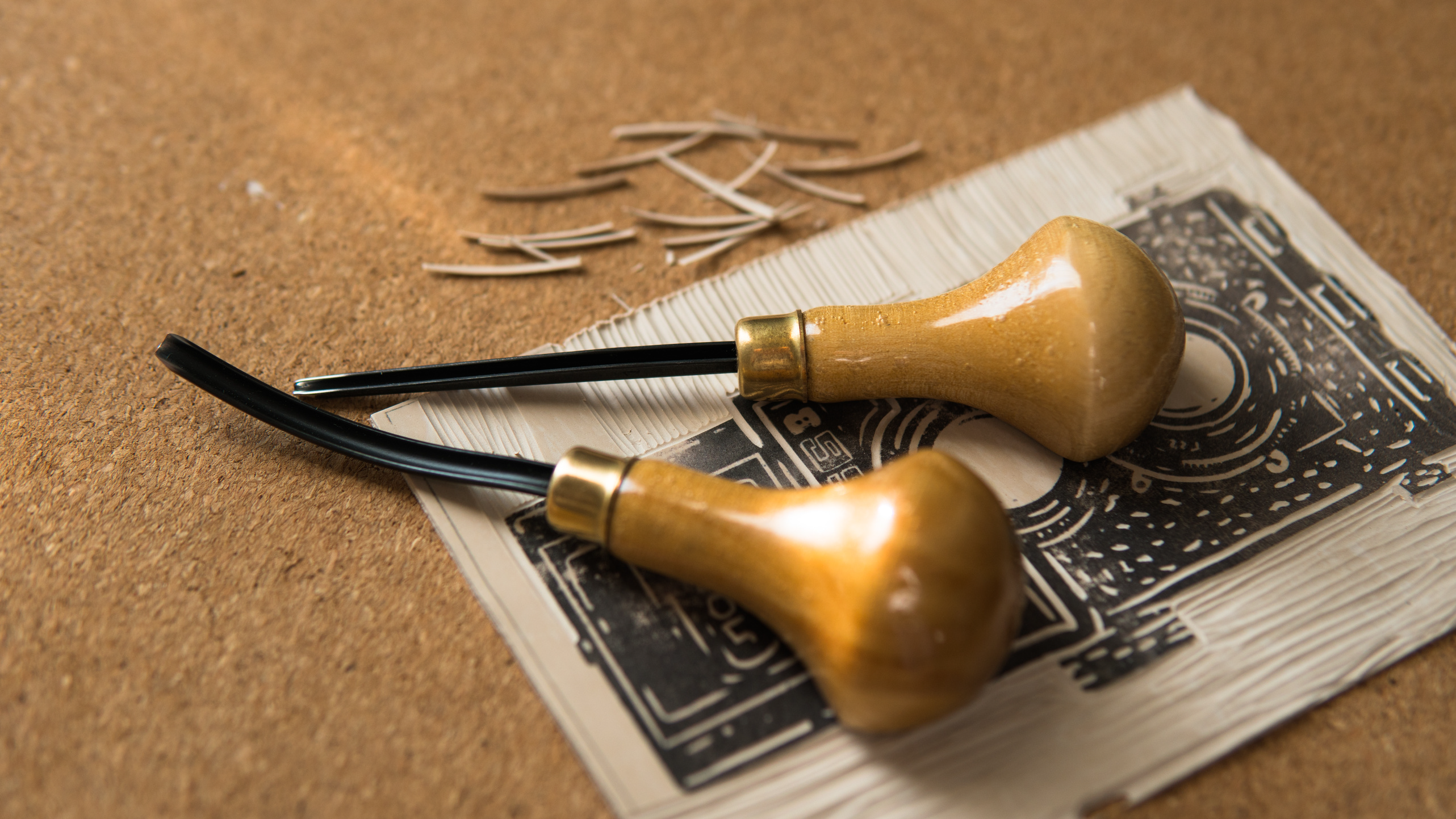 10. Once you have finished making your prints, remove any excess ink from your lino block using the cleaning tools and wrap in newsprint to take away with you.