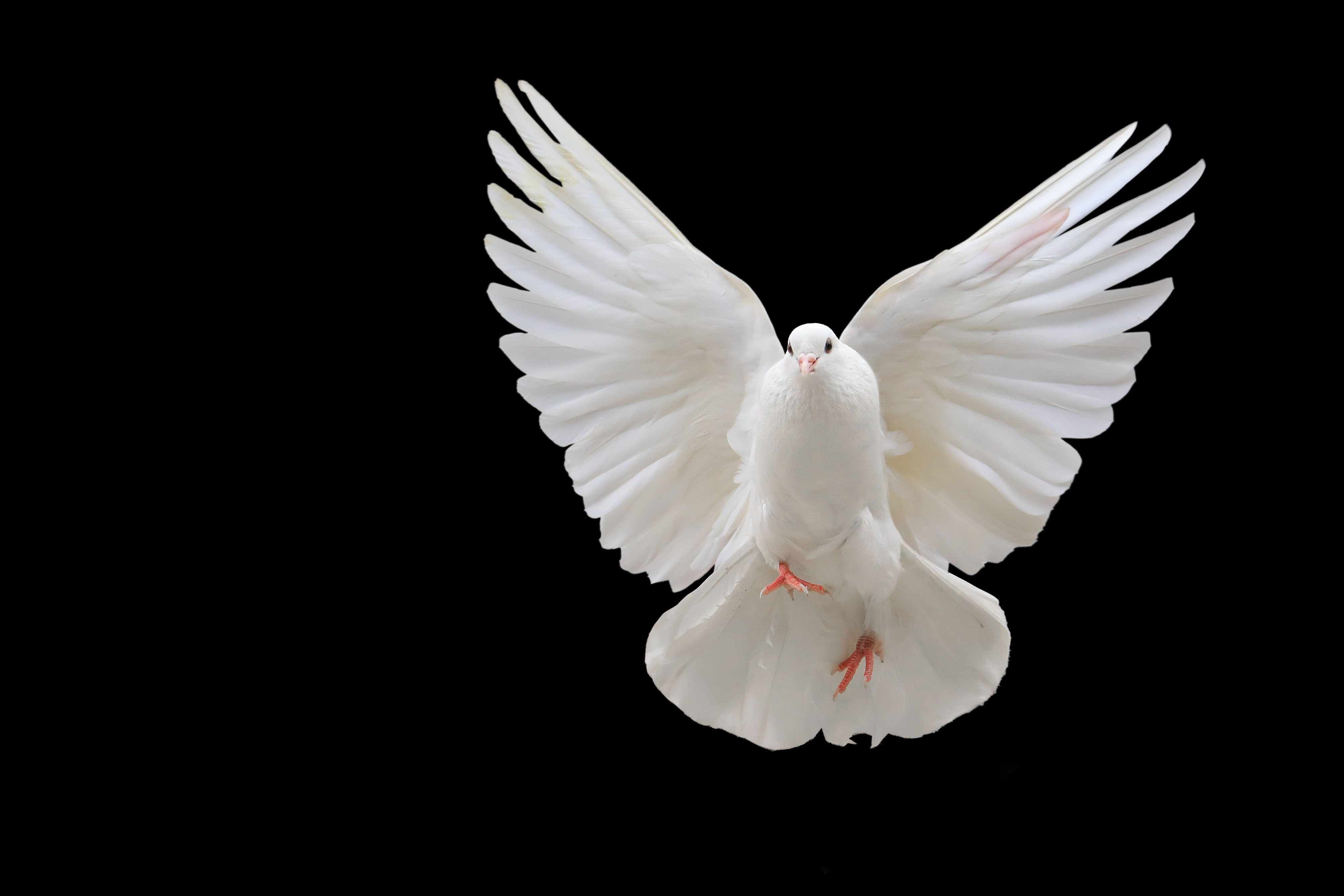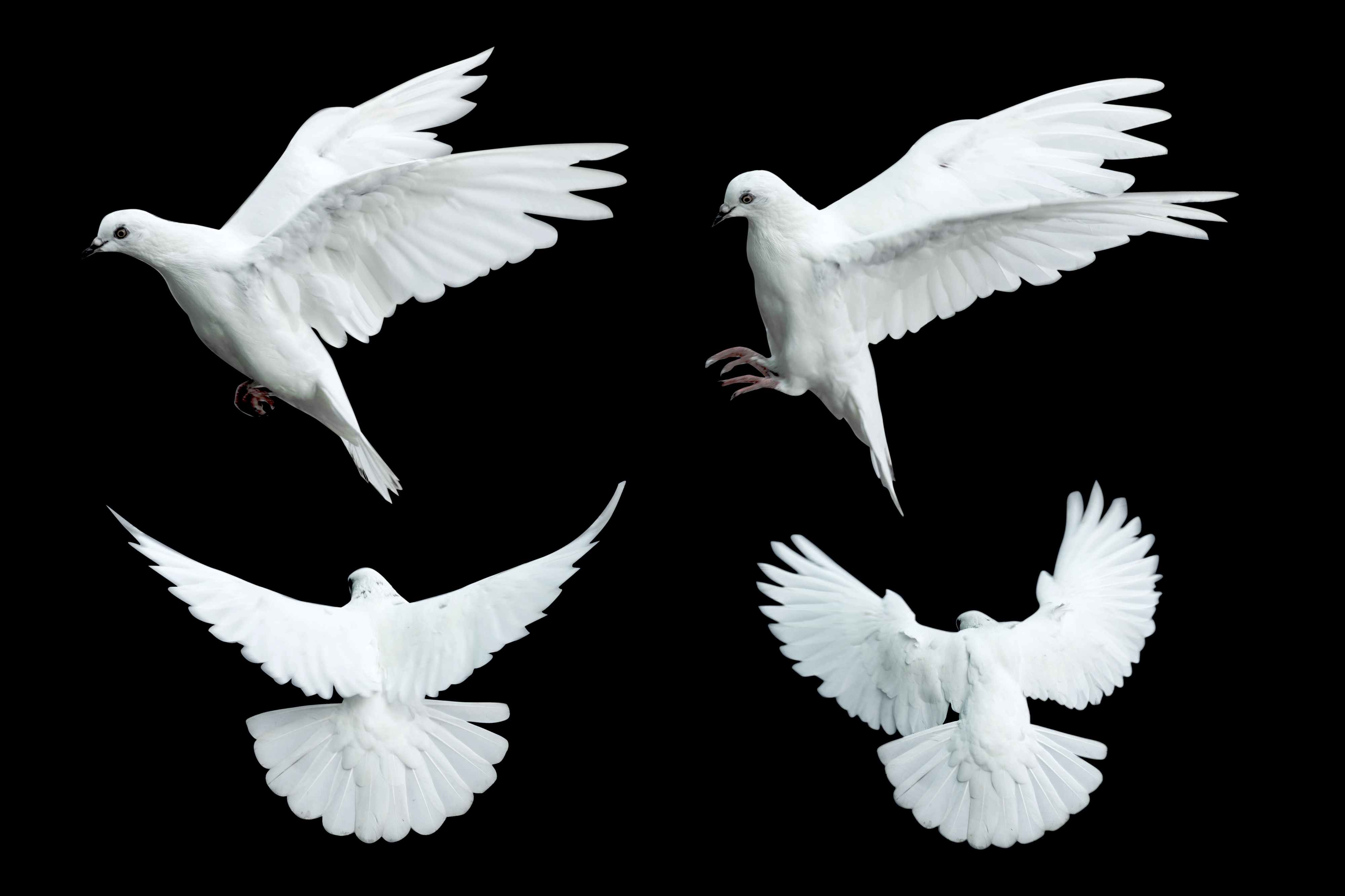 Created with images by Naypong Studio - "White dove isolated on white background" • chathuporn - "white dove flying isolated on black background" • Panduu Studio - "white dove flying with a black background."