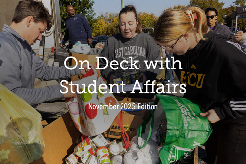 Dear Colleagues and Friends of Student Affairs: The Thanksgiving holiday is near, and then in a few weeks final exams and Fall 2025 Commencement. However, before we cue the graduation procession, I want to take a moment to say thanks for all the dedicated and focused work we have put in to aid our students in their success and/or to help them navigate through a challenge or obstacle this semester. It is very important that we take moments during these “fast times,” so please take some time to stop and reflect on what you are thankful for in your lives. A few years ago, in a VCSA message I noted that “many times, the world around us can feel chaotic, fast paced, and unkind.” I believe those words are still true almost 3 years later. However, like I said three years ago, “that same world can also be a beautiful place filled with 1000's of happy moments to be thankful for.” With the sprint to the end of semester finish line it can be difficult to take those intentional pauses for reflection and thanksgiving, but I think we must be intentional and take those breaks. Pauses are necessary for our health and well-being and will help us to best serve our students as they finish the semester. I hope you take time during this season of thanks and the soon to be winter break to practice self-care and focus on what matters most to each of you. As a reminder, there will not be a December edition of On Deck with Student Affairs, but it will return on January 15, 2026.