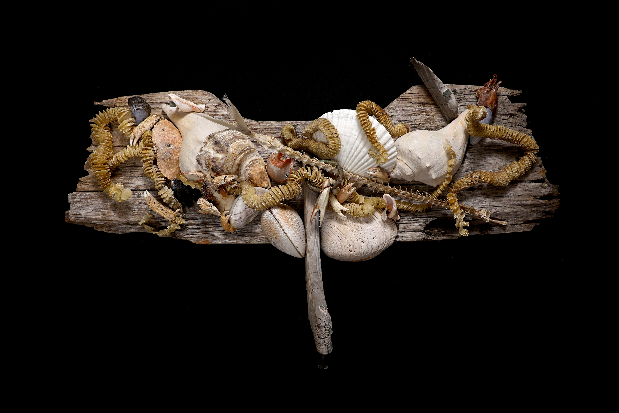 Recently, I have been collecting "gifts washed in by the tide" during my daily beach walks with my dog, Ollie. Somehow, these gifts from the sea help me reconnect to lost memories as they become transformed into the tangible thoughts and feelings hanging on the walls of this exquisite room. I have no idea how this happens. It's all a great mystery, but I think it has something to do with the healing nature of Vineyard waters.