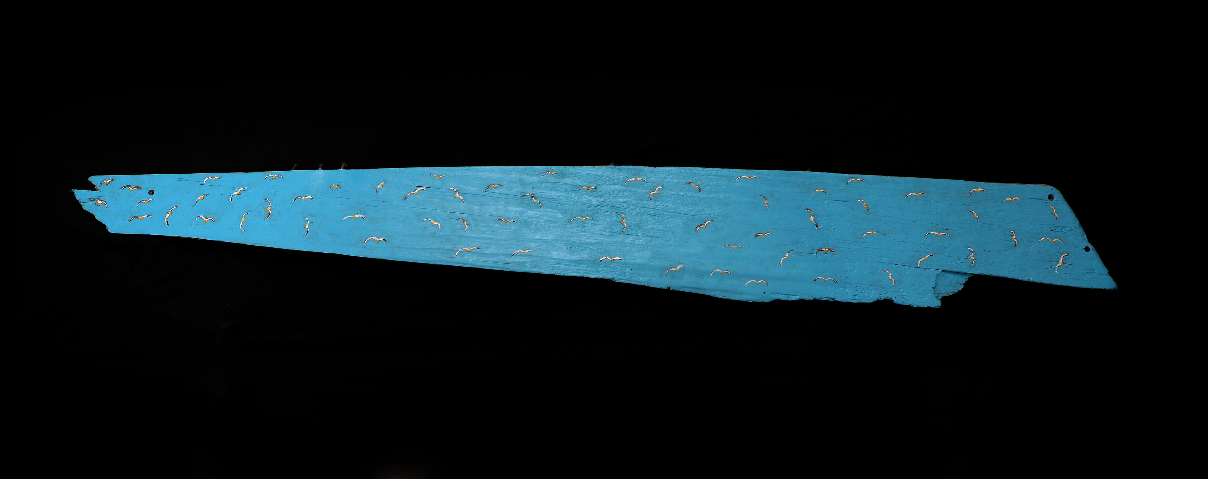 The only birds I saw on my entire tour in Vietnam were chickens and domesticated ducks. Fortunately, it seems, the indigenous bird population had the good sense to fly away. I painted this picture on part of a boat that washed ashore in Vineyard Haven because I need to be surrounded by my longtime feathered friends.