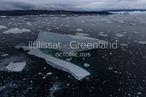Nous voici partis pour le Groenland en octobre 2025. Nous avons passé 4 jours à Ilulissat. le fjord qui déverse devant le village détient le record de glace déversée chaque année! Les énormes glaçons circulent devant le village. Ils se déplacent à vue d'oeuil et le paysage change tous les jours.