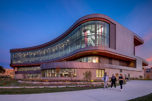 Located near Lake Mendota, the new center offers a 25-yard recreational pool, eight basketball courts, an ice sheet with spectator seating, multiple fitness areas, multipurpose studios and an indoor jogging track. The design also incorporates an adapted fitness space for the university’s Kinesiology program, esports, all-sport simulators, and a demonstration kitchen to provide a more inclusive experience.