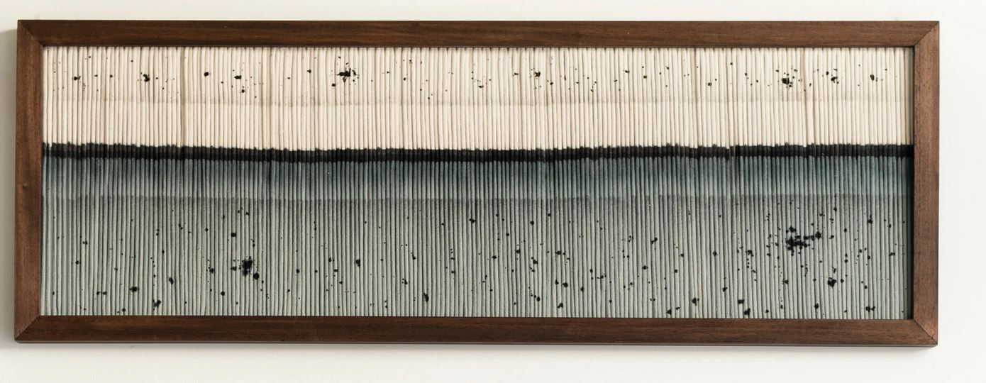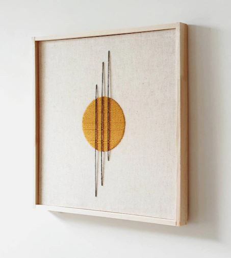 Als wanddecoratie heb ik een paar textielkunstwerken voorgesteld, zoals Coastline I van Rianne Aarts van Teddy and Wool.
