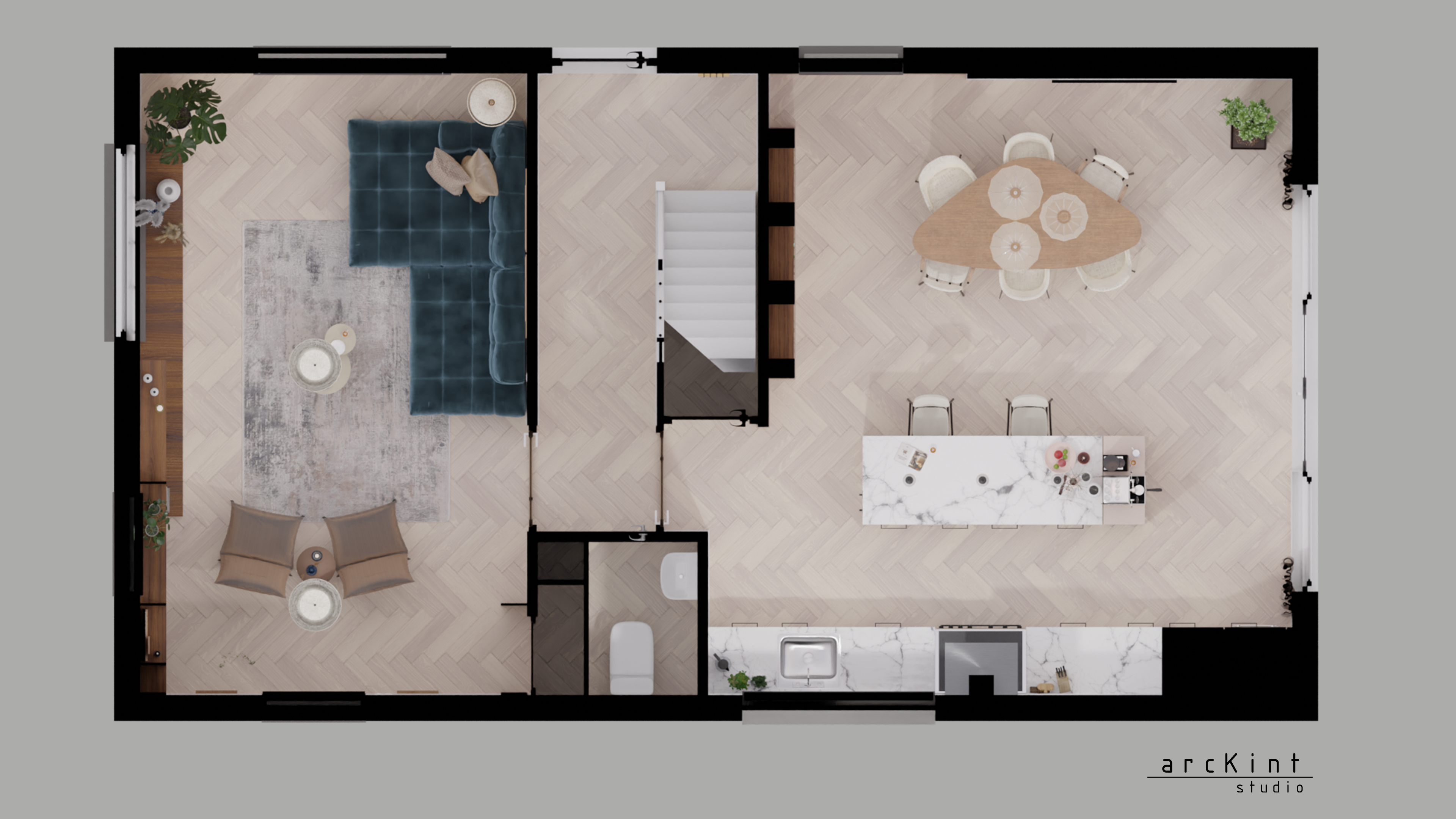 Bij een 3D-plan van arcKint Studio krijgen de opdrachtgevers een duidelijker beeld van hoe hun toekomstige ruimte eruit zal zien, waardoor ze meer inspraak hebben in de uiteindelijke look en feel van hun ruimte.