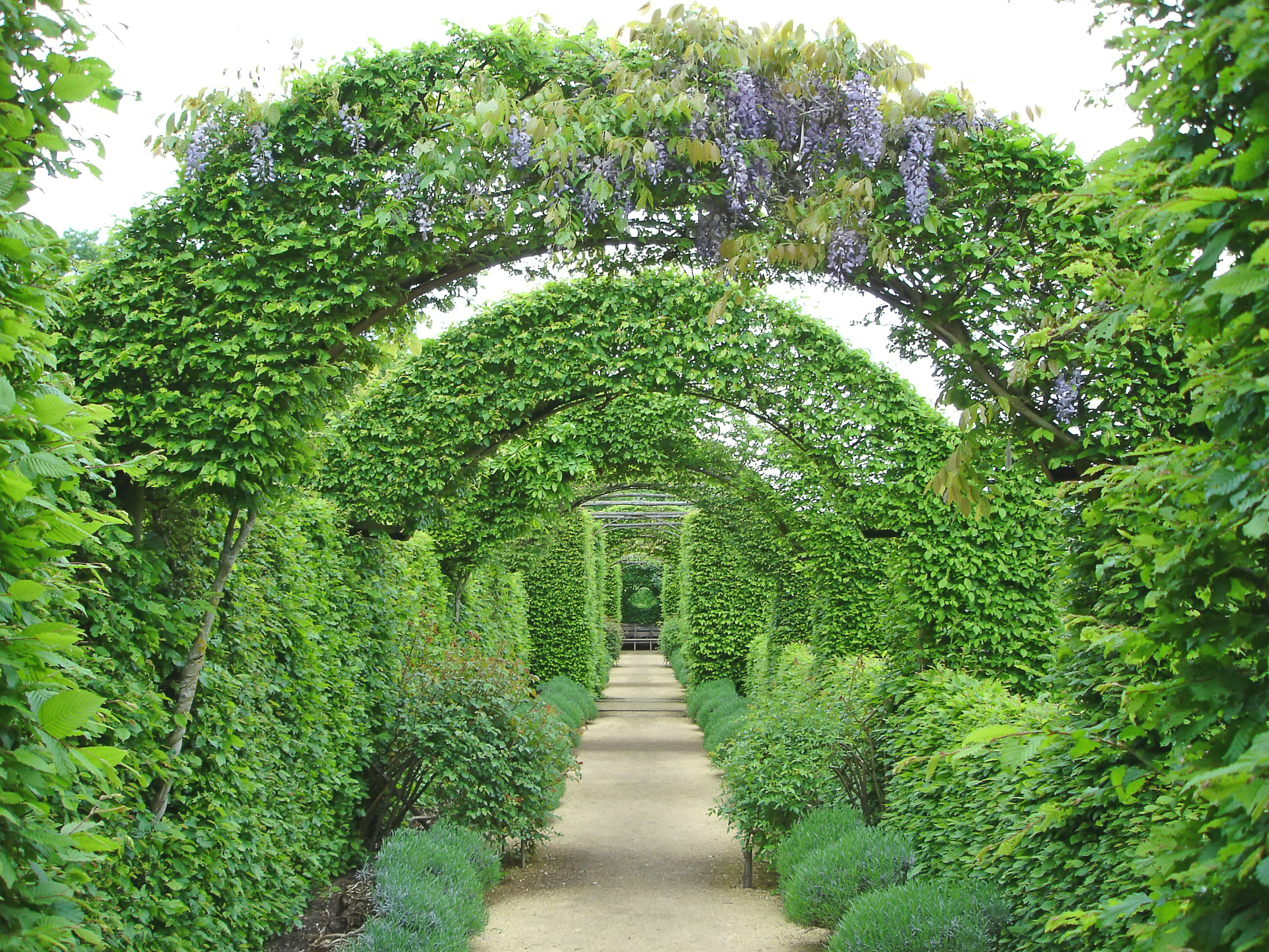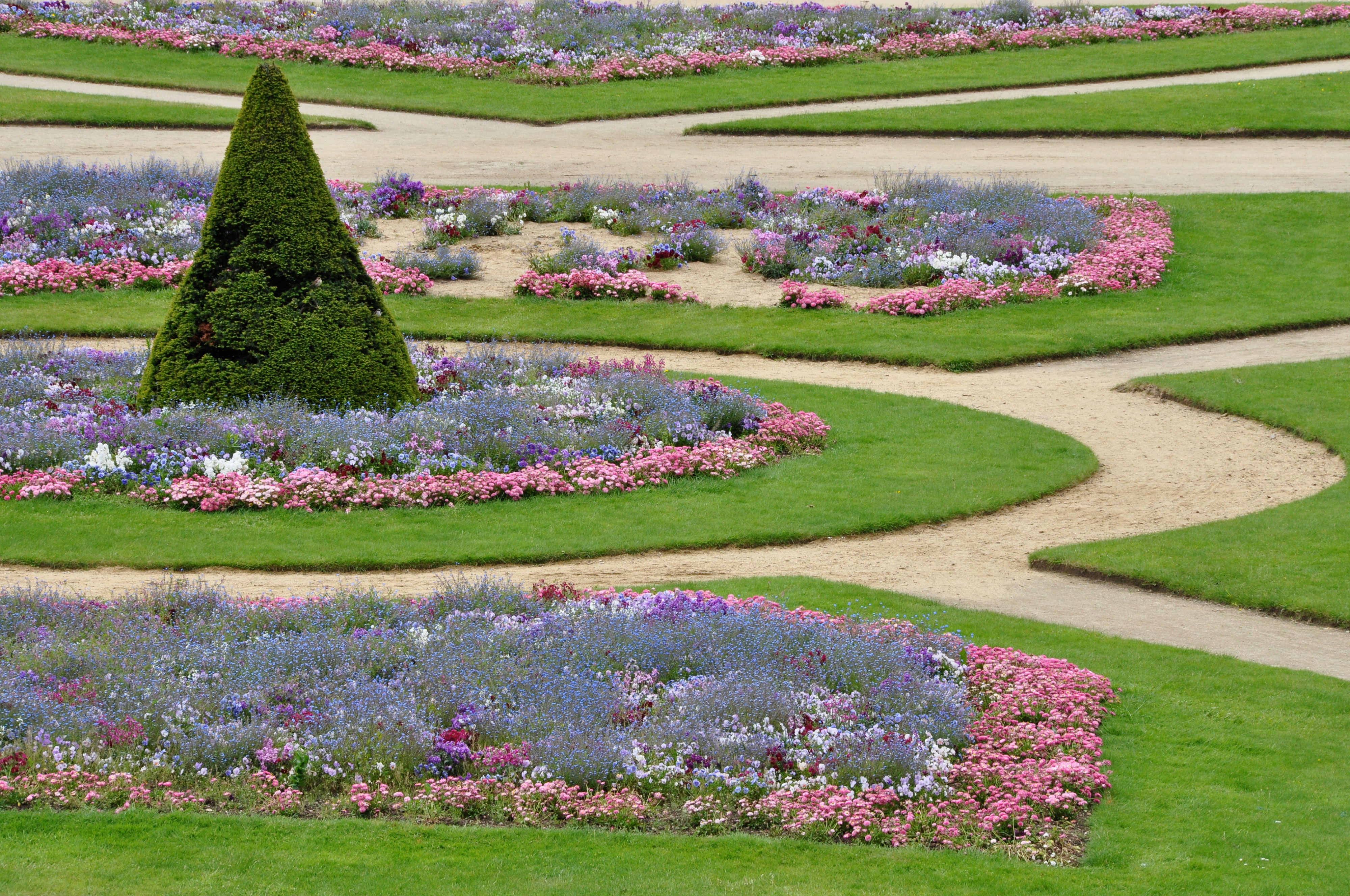 Chinese gardens emphasize asymmetry, movement, and symbolism. They are designed to be slowly revealed, often with more "hidden" views, curved paths, and a sense of layers. Alternatively, the Western & European gardens emphasize symmetry, dominance over nature, and rational design. In Chinese Garden design, plants have their symbolism. Pine trees represent wisdom, peonies wealth and power, the lotus purity, and other plants represent certain seasons, like plum trees for winter blooms. Rocks, while decorative, can represent mountains, wisdom, and even immortality. During the Ming dynasty, a scholar's garden had five elements: rocks, water, plants, architecture, and connections to Chinese literature and culture. Architecture elements are things such as towers, pavilions, halls, and bridges. Zigzag paths and/or bridges were specifically built so that spirits could not pass, as they were thought to only be able to walk in a straight line. There are now public gardens, but owning a garden in China is still seen as a symbol of wealth.