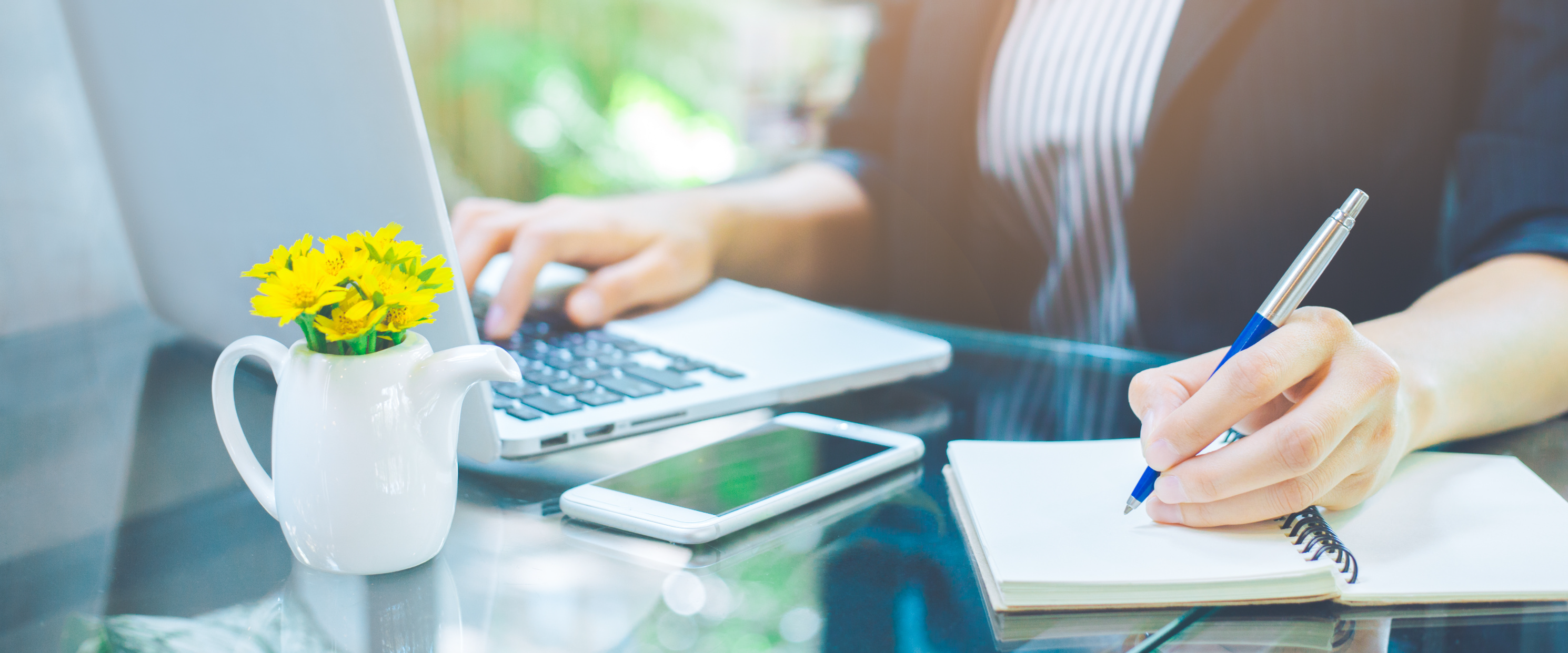 Created with images by fotografierende - "write notebook pen" • apichon_tee - "Business woman hand is writing notebook with a pen and using a laptop computer in the office"