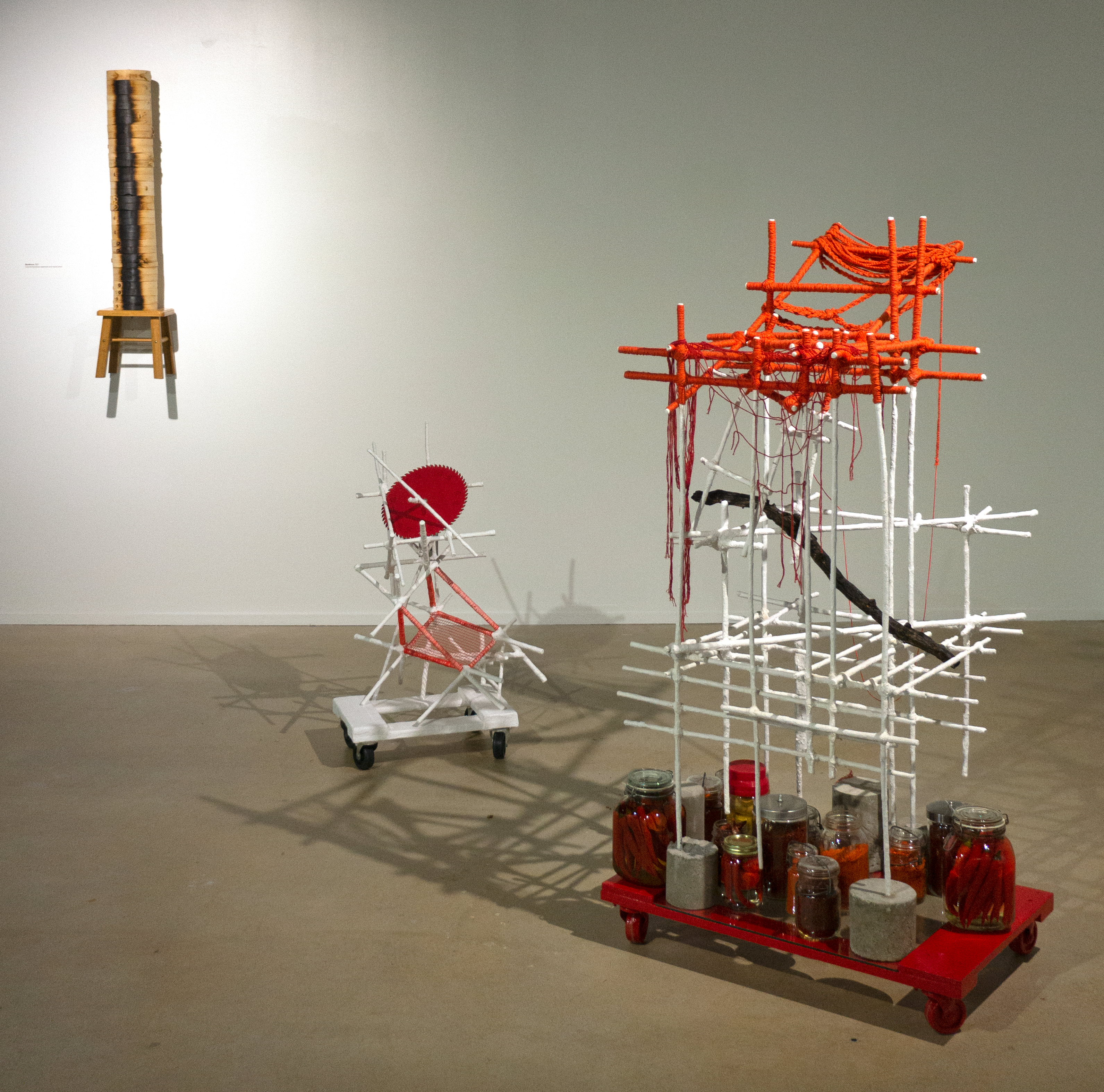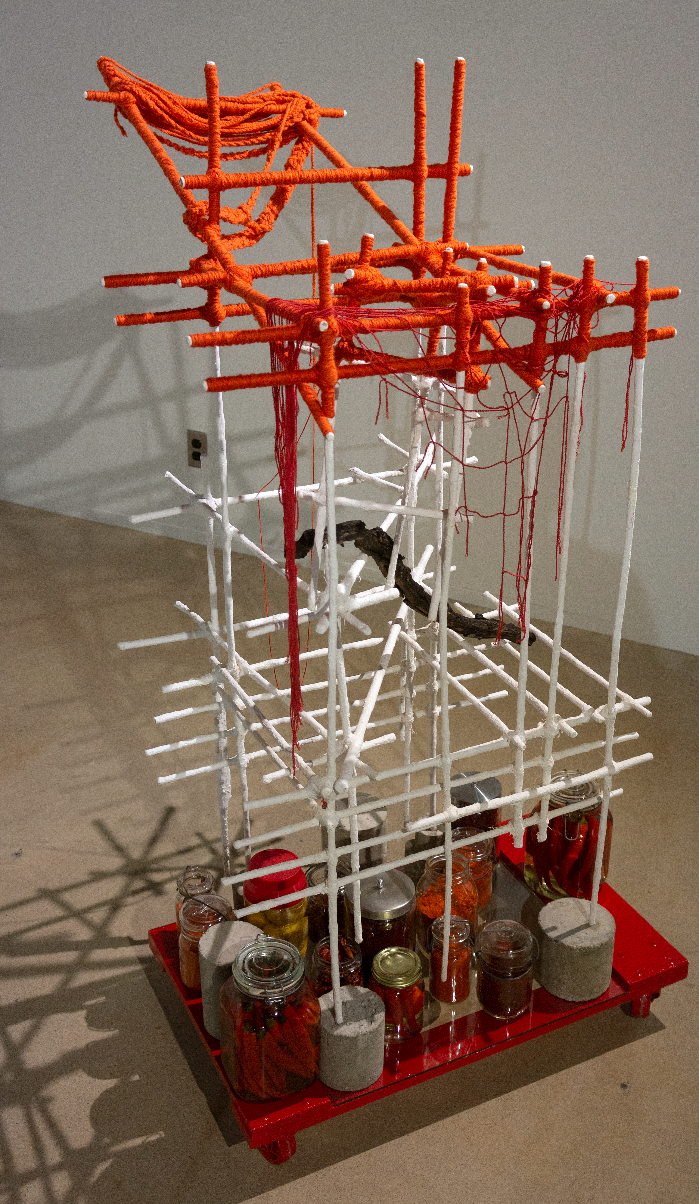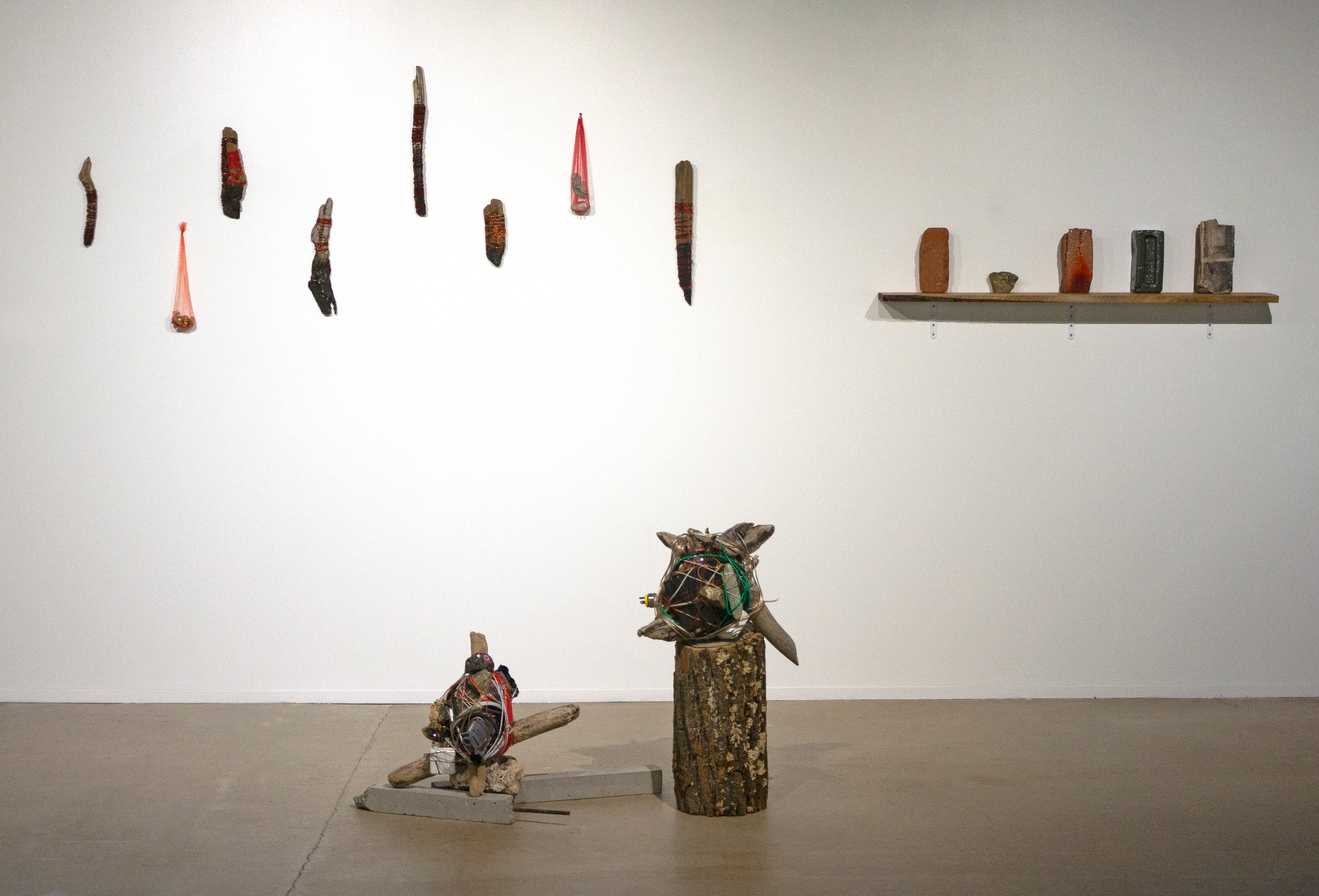 As an artist, Lee often uses and transforms common materials to address themes of displacement and upheaval—a sense of landscapes caught up in the rapid change of demolition and construction, as she has experienced them both in Korea and China. Yet she finds compelling that even in the midst of enormous upheaval people will create small spaces that serve as gardens or simply spots that define a personal place. Some of the works address this phenomenon and invite the viewer to experience a configured space that elicits awareness of transient calm or solace. - Professor of Art History, Richard K. Kent