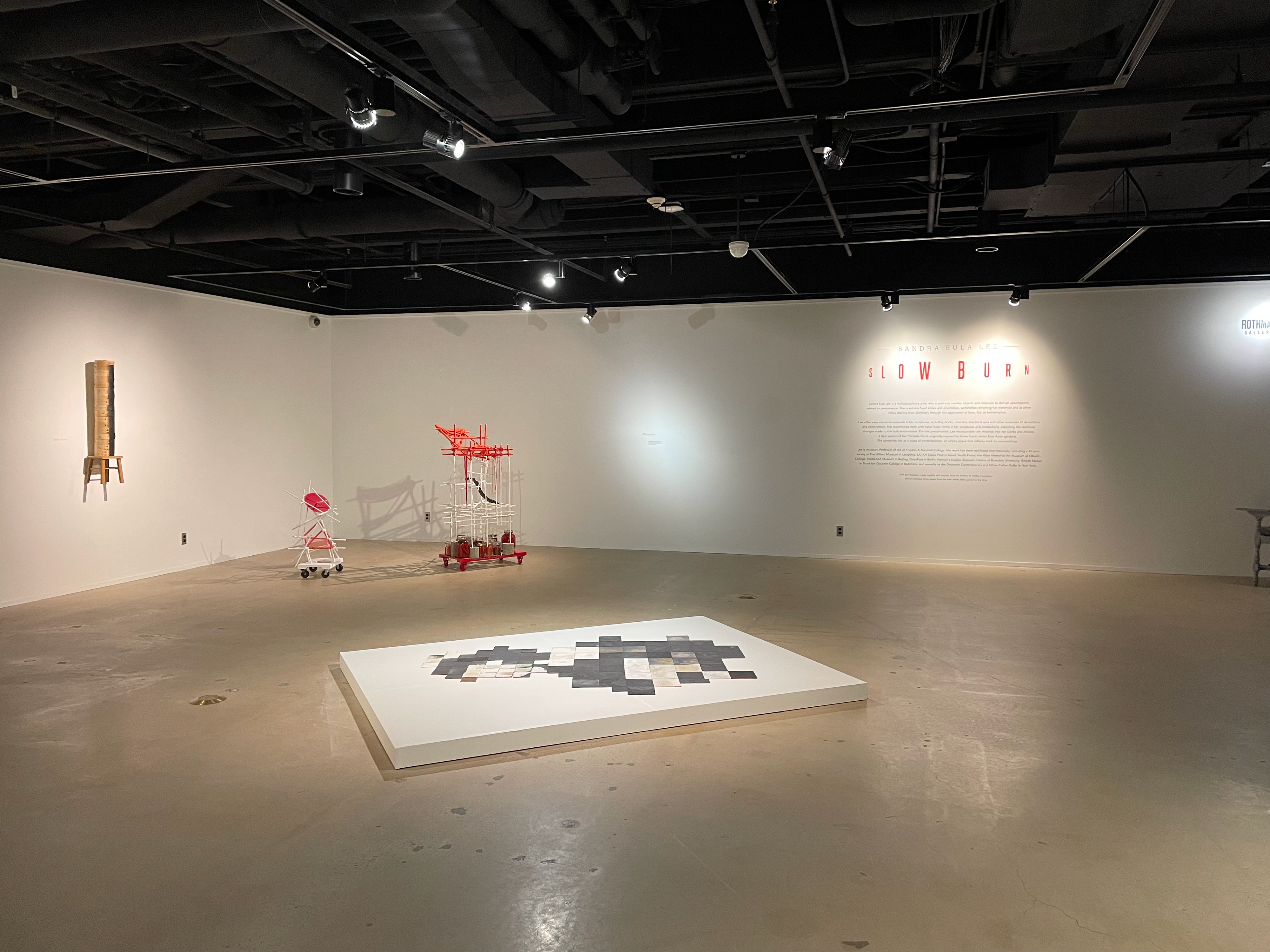 Sandra Eula Lee is a multidisciplinary artist who transforms familiar objects and materials to disrupt assumptions related to permanence. She questions fixed states and orientation, sometimes reframing her materials and at other times altering their chemistry through the application of heat, fire, or fermentation.