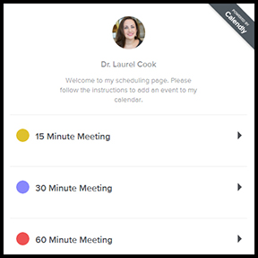 Individual or group meetings with me will take place on Zoom and can be easily scheduled ahead of time: Calendly.com/LaurelCook