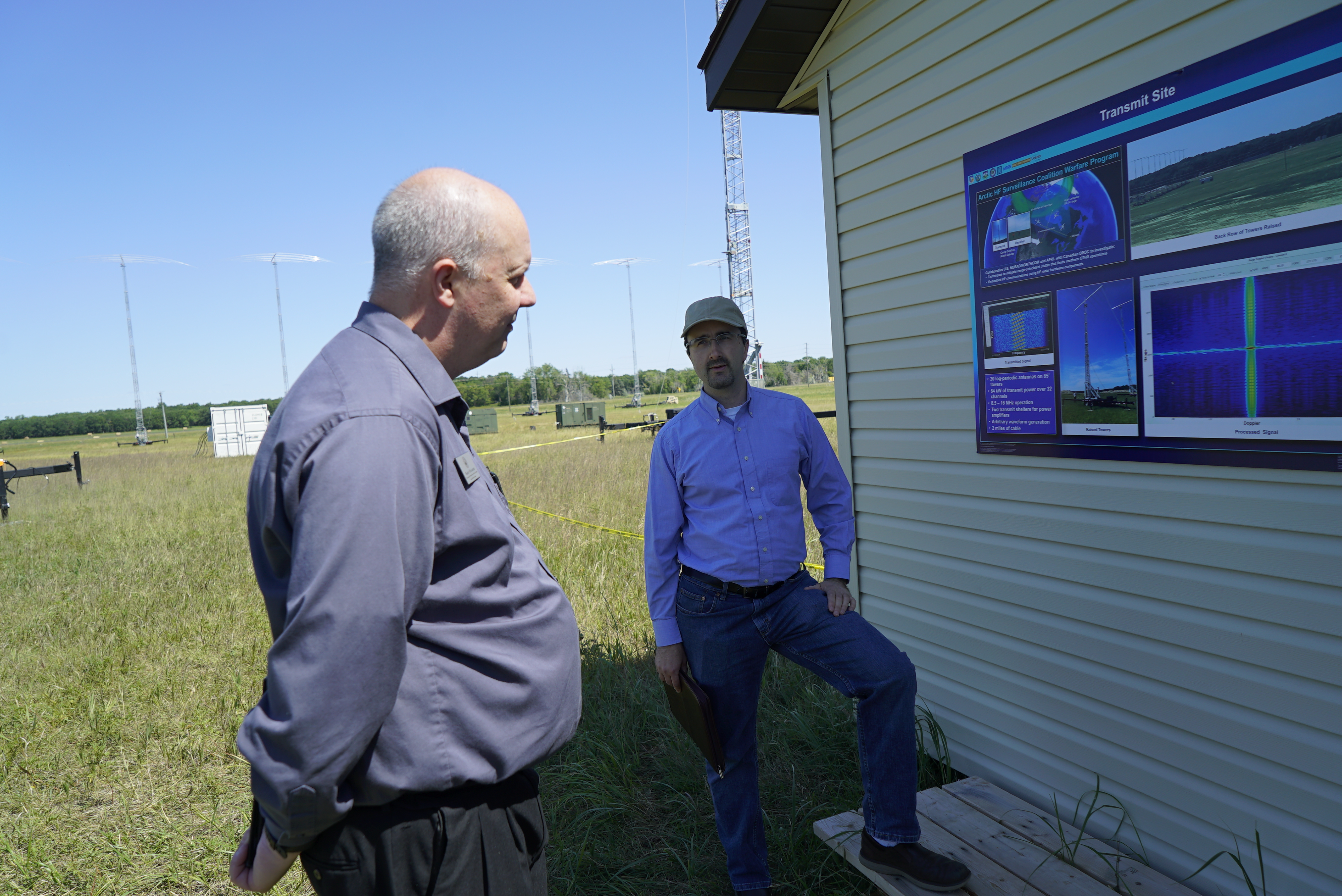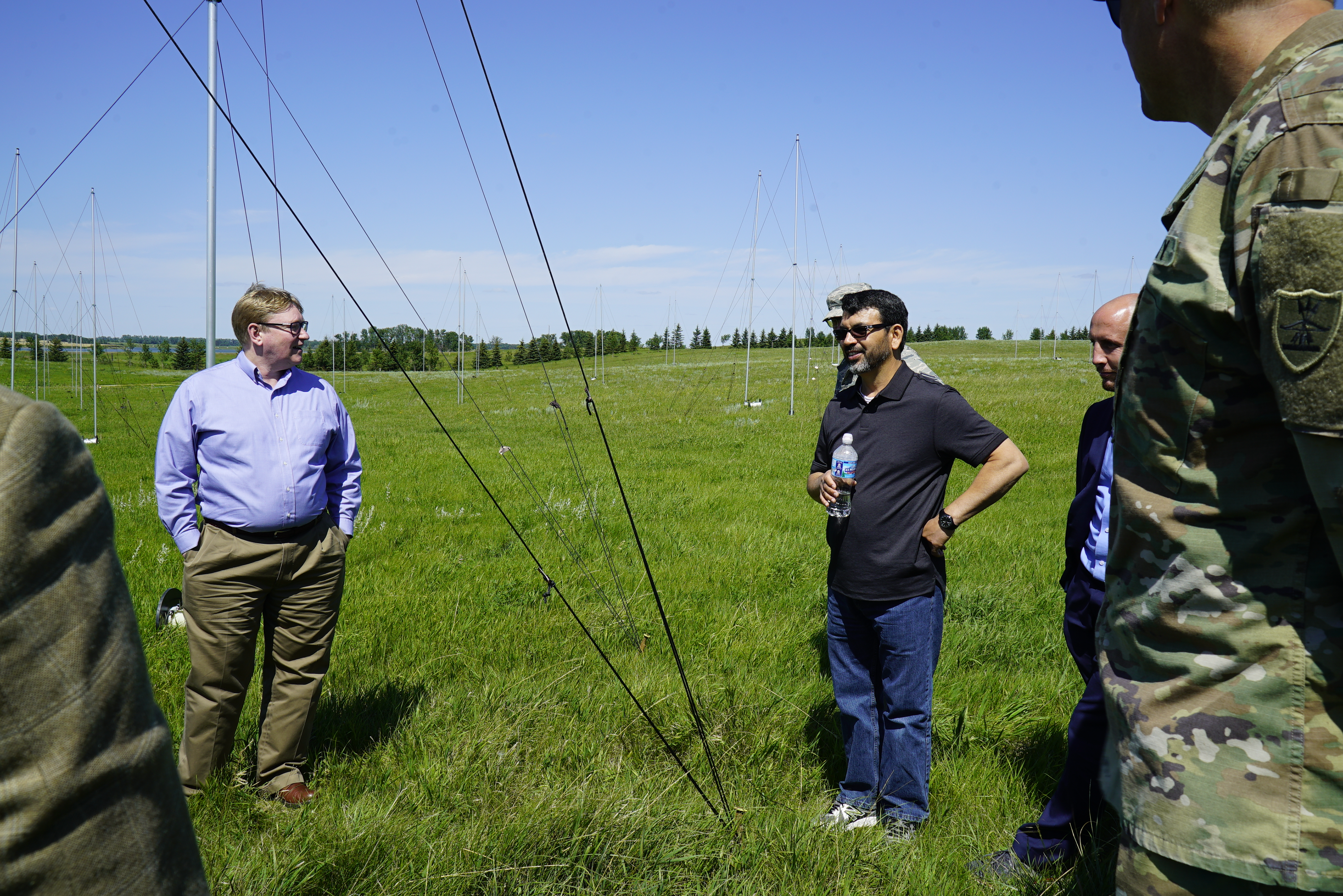 The research project, which is two years in the making, began in early June and will last roughly 90 days. The VIP group received briefings from project experts, and toured the transmit site on Camp Grafton and the receive site on Camp Grafton South, where 20, 100-foot antennas and 160 smaller antennas are located, respectively.