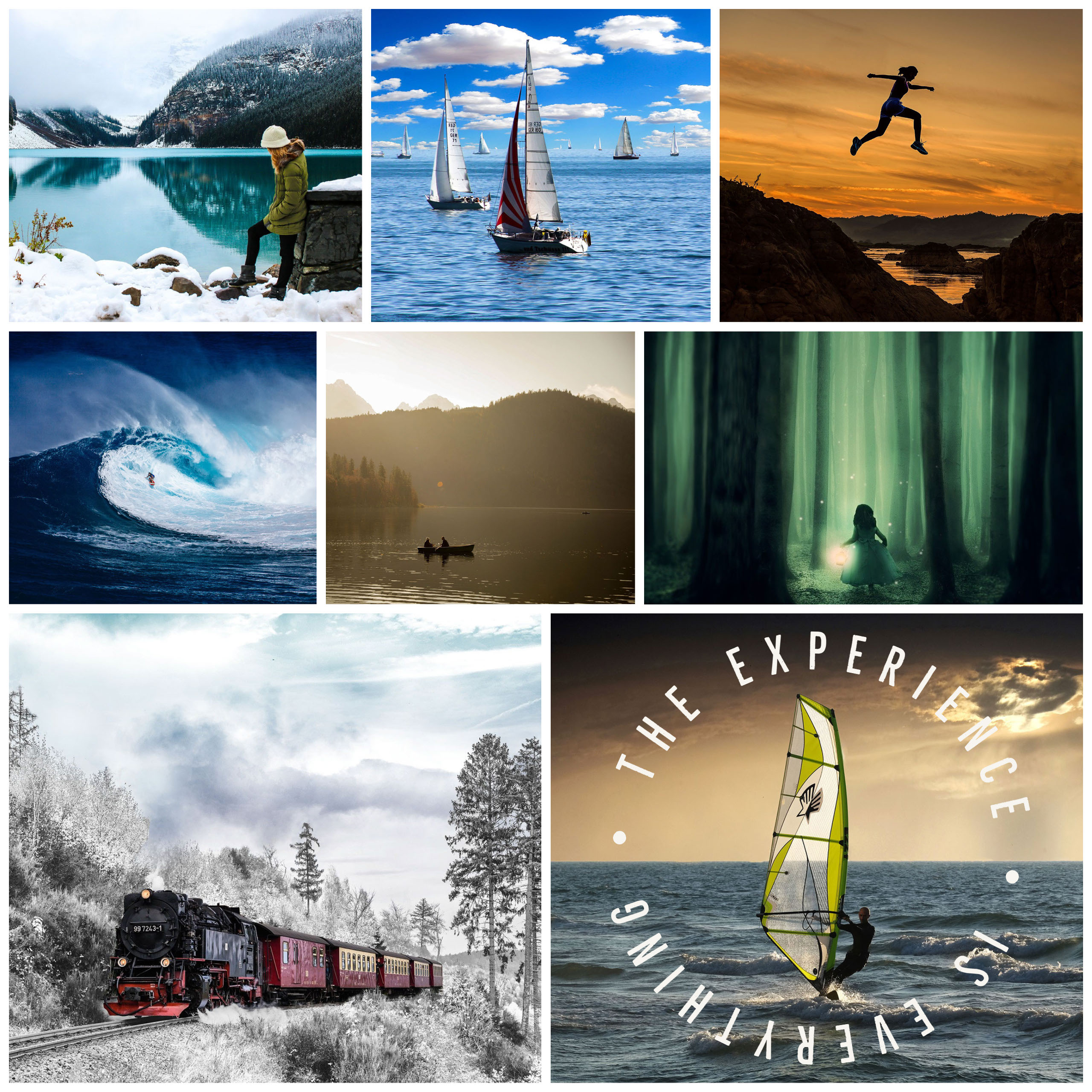 Created with images by soft_light - "Traveler walking along the road to the mountains" • vacharapong - "White sport shoes on isolated white background with copy text space" • alexlukin - "Discs for the barbell" • bernardbodo - "Running is her way of run" • Ivan - "Old man in sportswear lying on mats doing child asana, exercise calms body and mind, stretching hands forward. Practicing yoga at home. Wellness concept. Man training to have flexible body." • Rido - "Woman eating salad" • sasint - "cliff adventure above" • SZimmermann_DE - "city building cityscape" • Atelopus - "Aerial panorama of the Rio Napo at dawn in the Ecuadorian Amazon with the first rays of the sun illuminating the forest canopy." • DariuszSankowski - "champagner toasting new year's eve"