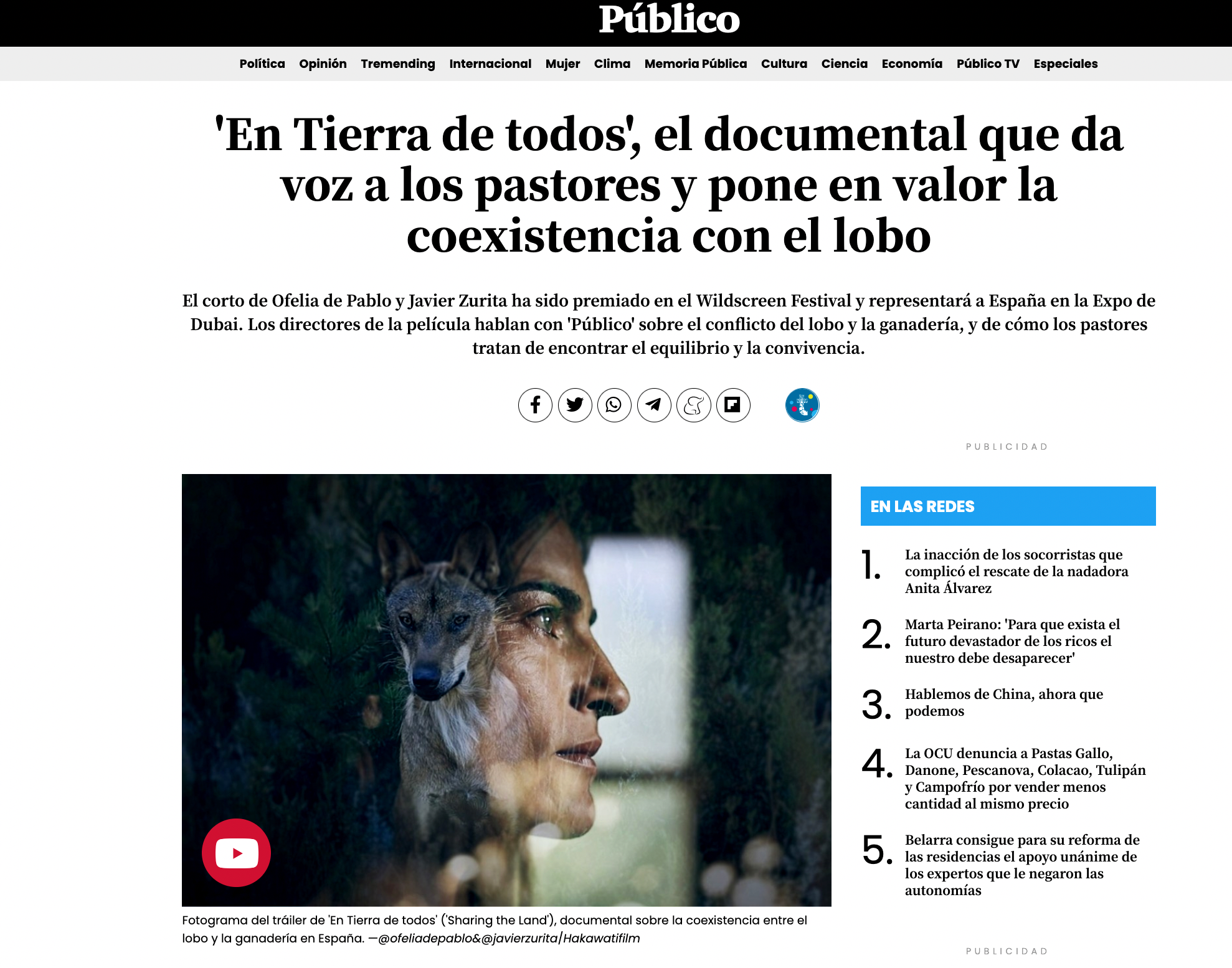 Sharing the Land nominado a los OSCAR MEDIOAMBIENTE