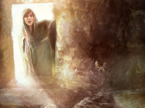 Il primo giorno della settimana, Maria di Màgdala si recò al sepolcro di mattino, quando era ancora buio, e vide che la pietra era stata tolta dal sepolcro.